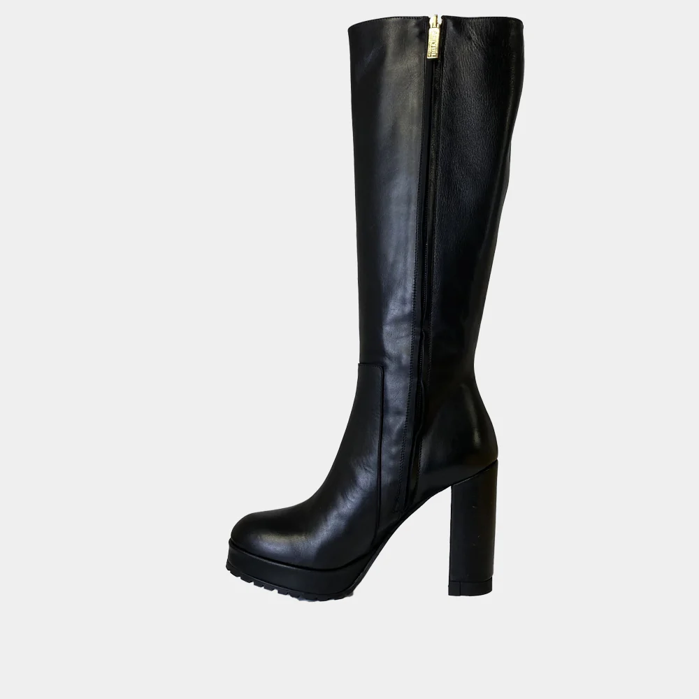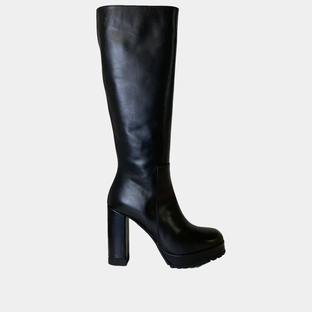Prenez de la hauteur avec nos bottes à plateforme Ann Tuil modèle Dana en cuir noir. C’est la paire incontournable pour la saison automne-hiver !