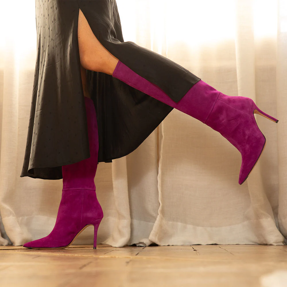 Découvrez la toute nouvelle tendance de la rentrée avec nos magnifiques bottes MOKA ELI ! Ces bottes élégantes et sophistiquées sont conçues pour vous offrir un look à la fois chic et moderne. Caractérisées par leur bout pointu et leur talon fin de 9 cm, ces bottes apportent une touche de sophistication à n’importe quelle tenue. Le velours violet donne à ces bottes une allure luxueuse, tandis que le bout pointu ajoute une touche d’élégance supplémentaire.