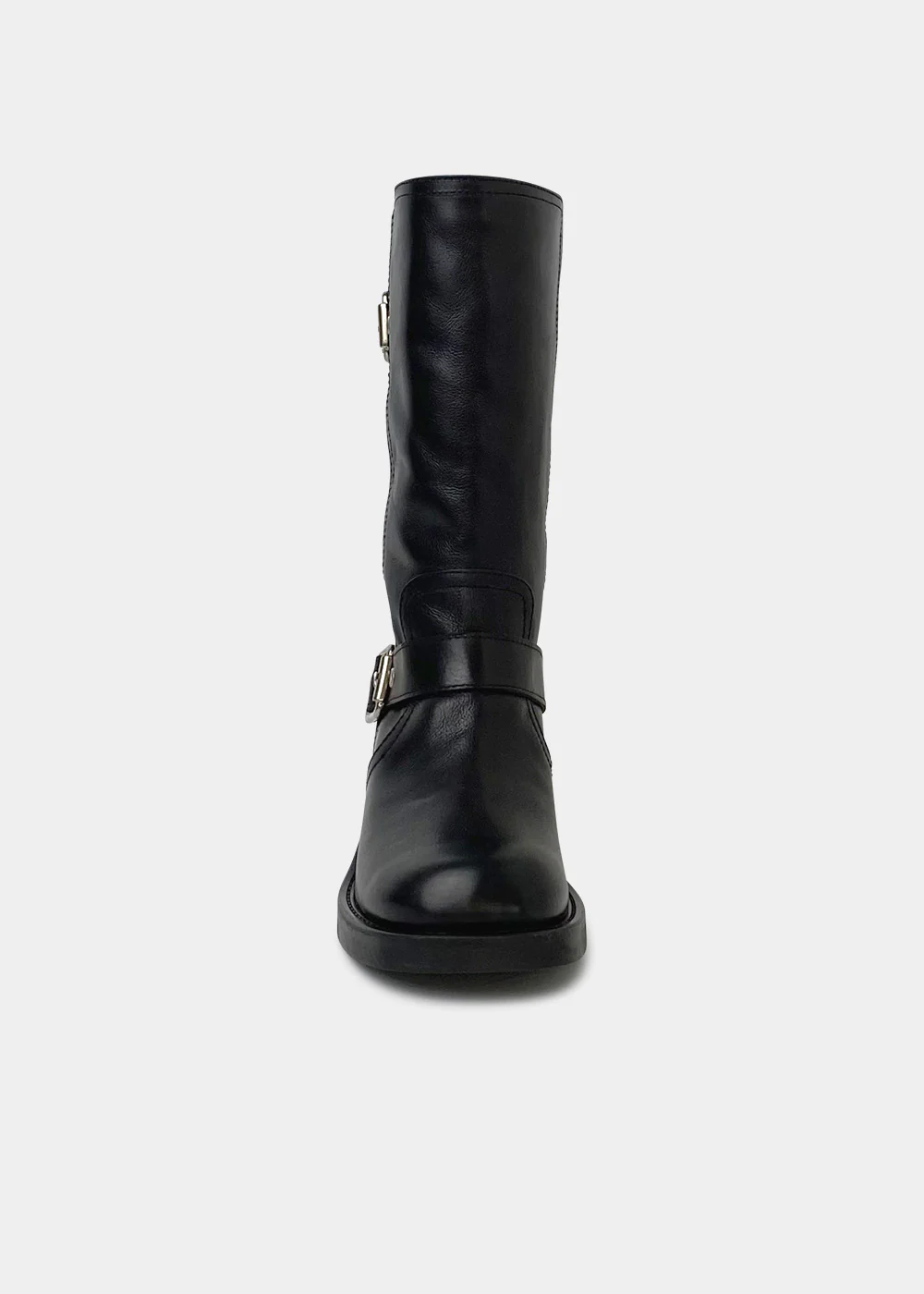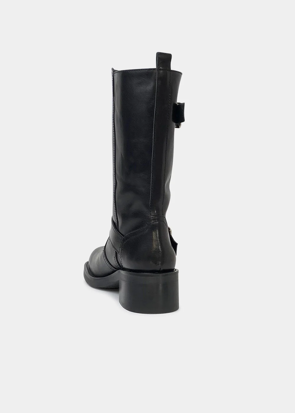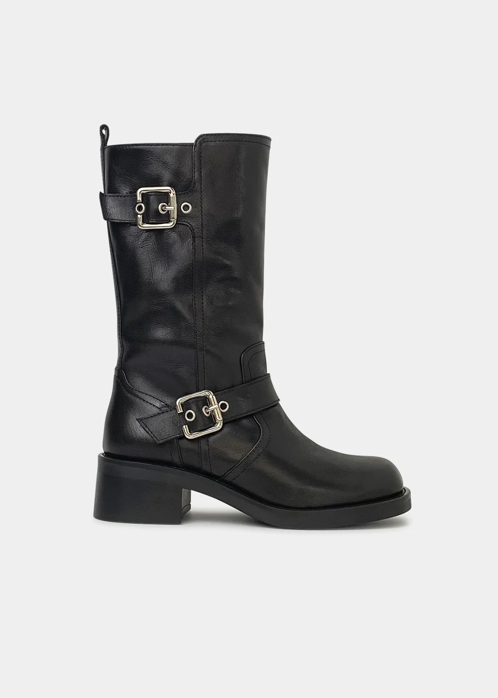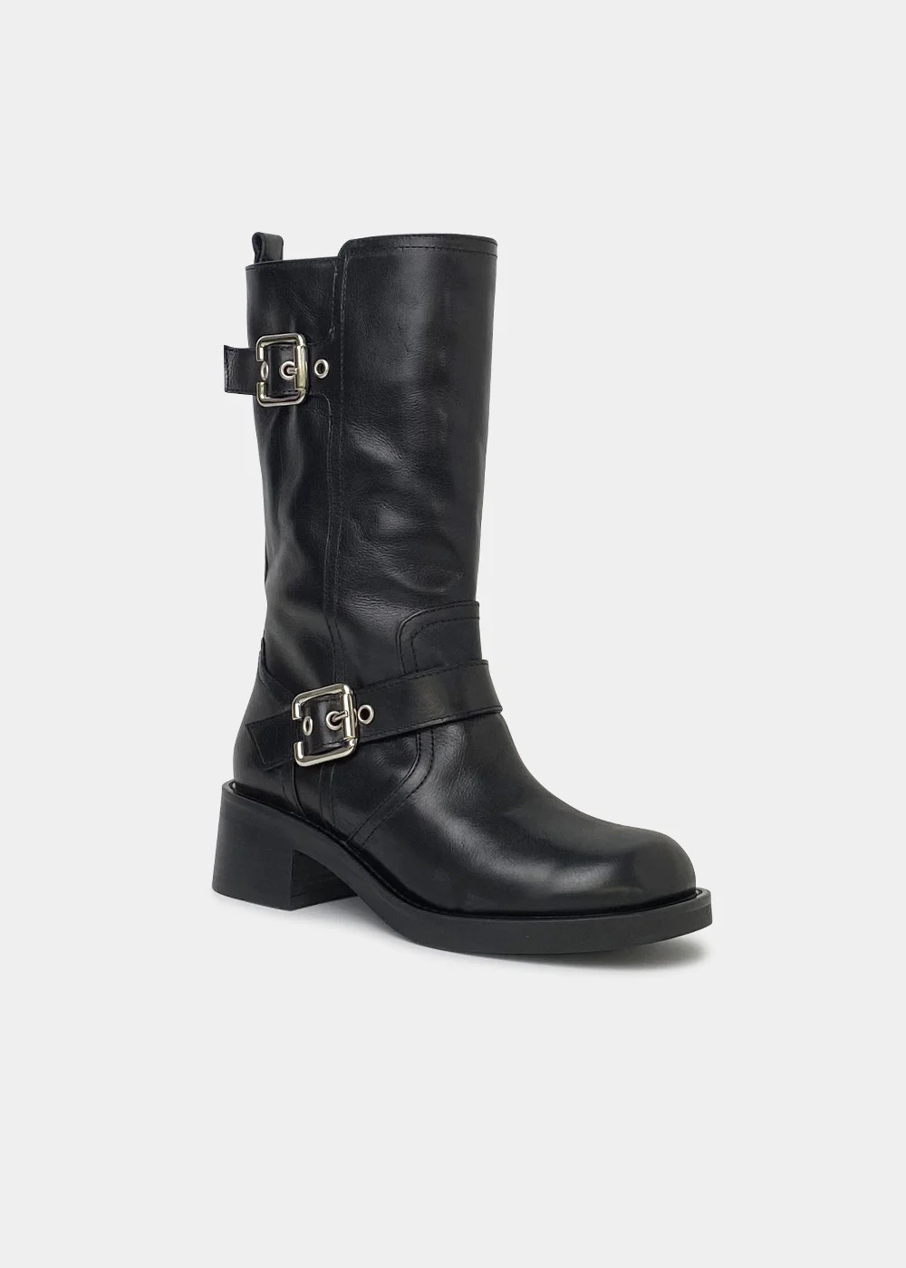 Craquez pour les nouvelles boots d’inspiration biker de chez Barbara Bui. Le modèle E5157 est plein de caractère avec sa finition glacée et sa sangle à boucles.