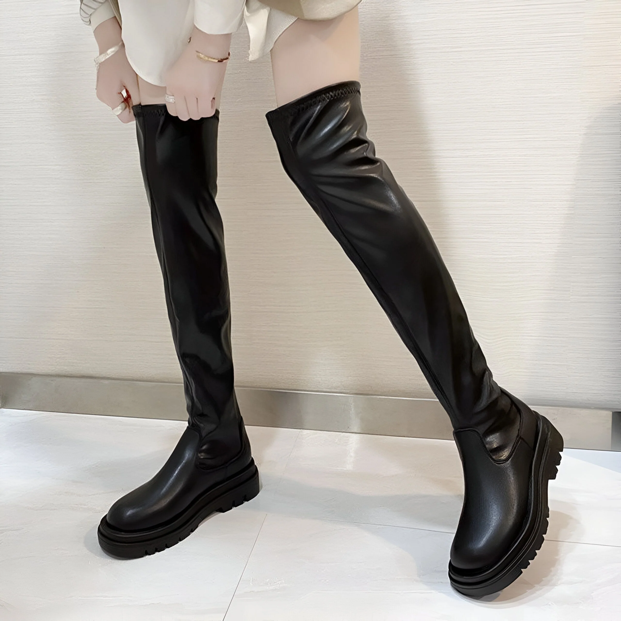 Imaginez : vous affrontez la rigueur de l’hiver, mais vos pieds restent au chaud et au sec. C’est la promesse que tiennent nos bottes hautes plateforme. La semelle intérieure a été spécialement conçue pour un confort optimal, même après une longue journée passée debout. La matière PU de qualité supérieure procure une sensation agréable sur la peau et une protection efficace contre le froid et l’humidité. Le talon carré, d’une hauteur judicieuse, apporte une touche de style tout en assurant une stabilité parfaite pour une démarche assurée.