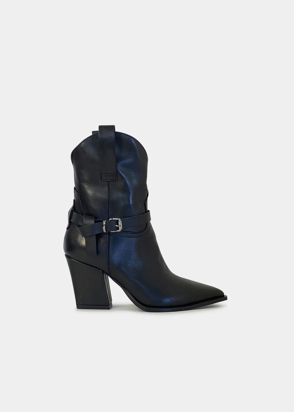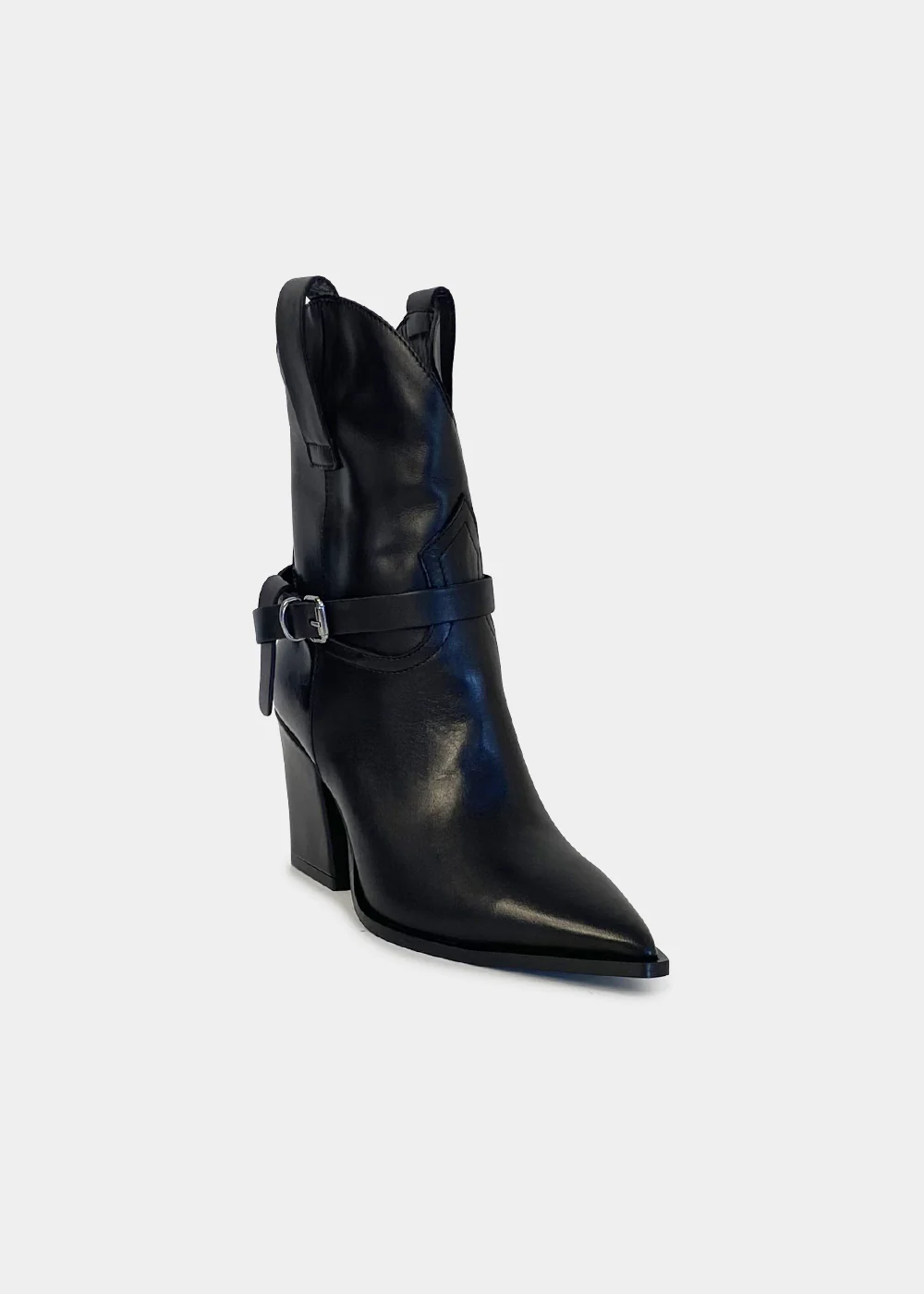 Les boots style santiag Ann Tuil Giuliana allient caractère et élégance avec leur talon biseauté, leur bout pointu et leur bride décorative. Inspirées de l’esprit western, elles apportent une touche audacieuse et féminine à vos tenues. Idéales pour celles qui cherchent à affirmer leur personnalité, ces boots se distinguent par leur caractère tout en conservant une grande élégance. Un choix audacieux et raffiné pour toute garde-robe !