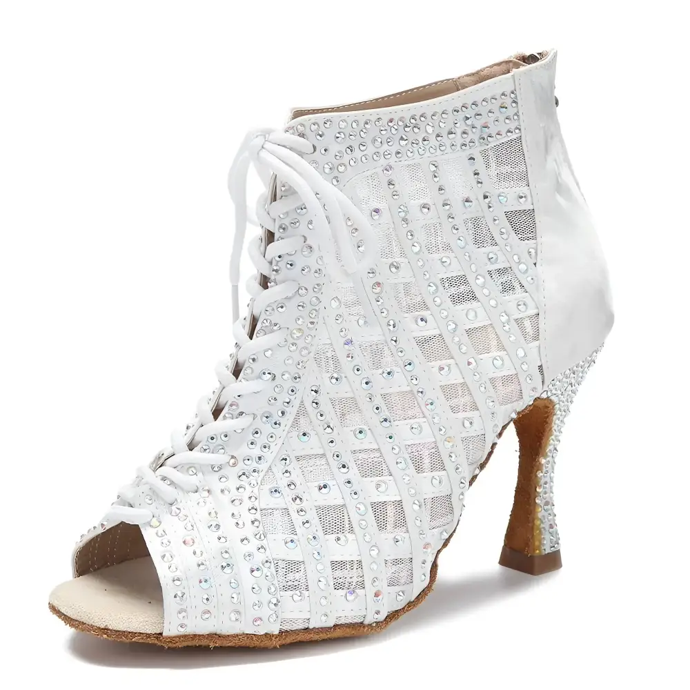 Nos Bottines de Danse Blanche sont parfaites pour les Danses Latines. Que ce soit pour des pas de rumba en salsa ou bien des suaves en kizomba ou encore des vagues comme en bachata ces Bottines de Danse Blanche en strass sont idéales pour effectuer tous vos mouvements dans des chaussures confortables et flexibles.