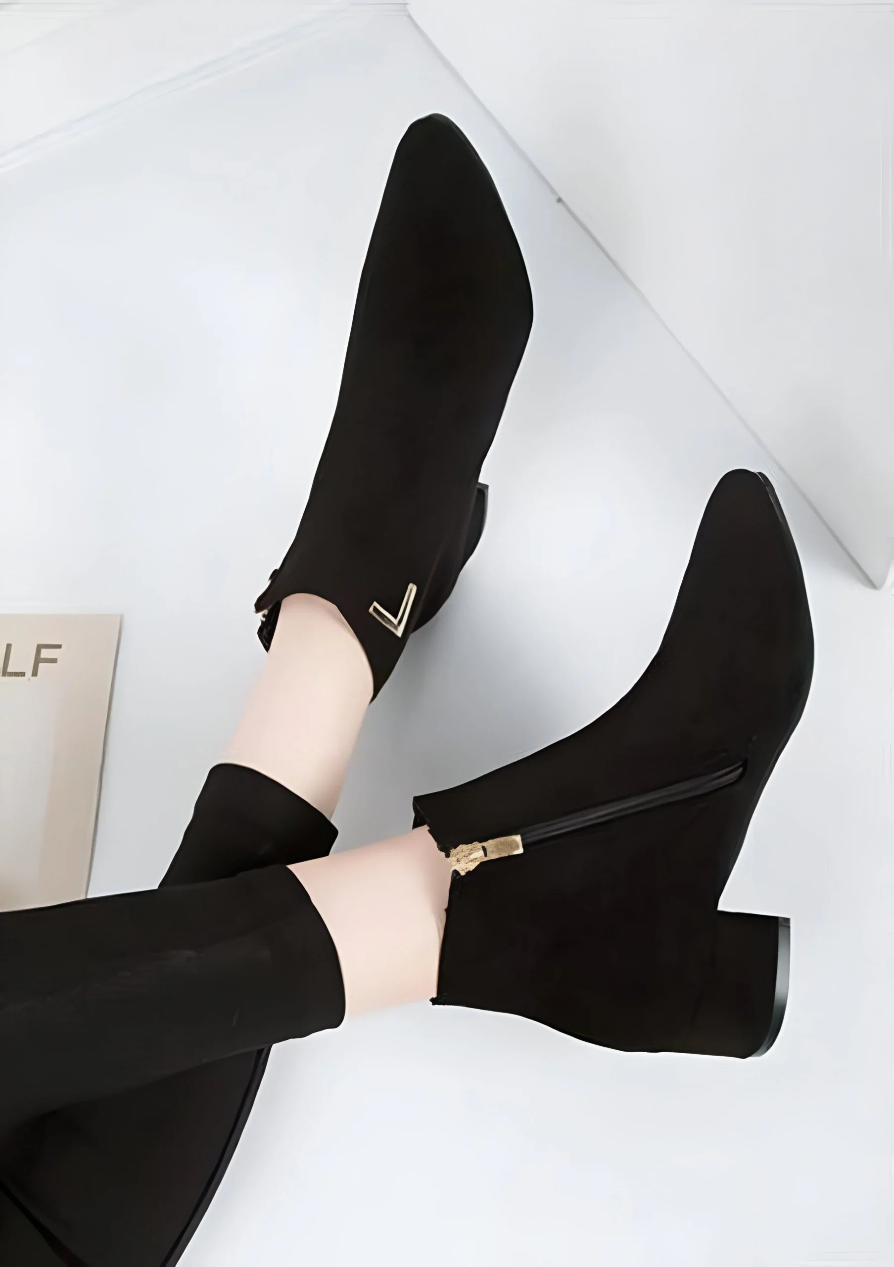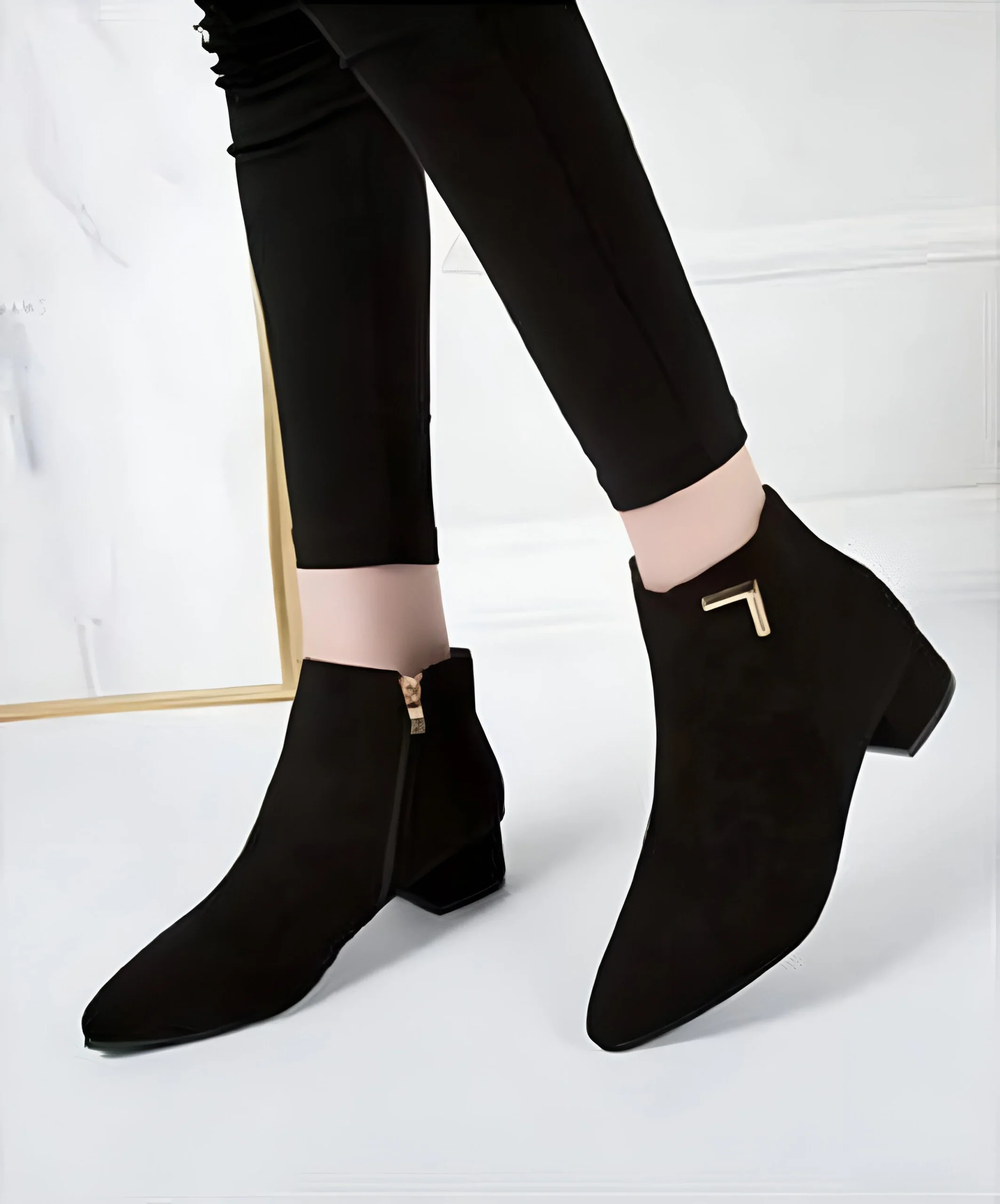 Chaque détail compte. La forme élégante de la bottine, la finesse du talon bloc, la qualité des finitions… tout a été pensé pour vous offrir une paire de chaussures qui allie confort et style intemporel. La ligne épurée et la coupe ajustée subliment vos jambes et votre silhouette. La petite touche dorée sur la fermeture éclair ajoute une note d’élégance discrète qui ne passera pas inaperçue. Des bottines qui vous accompagnent au fil des saisons et des années, un investissement judicieux pour votre garde-robe.