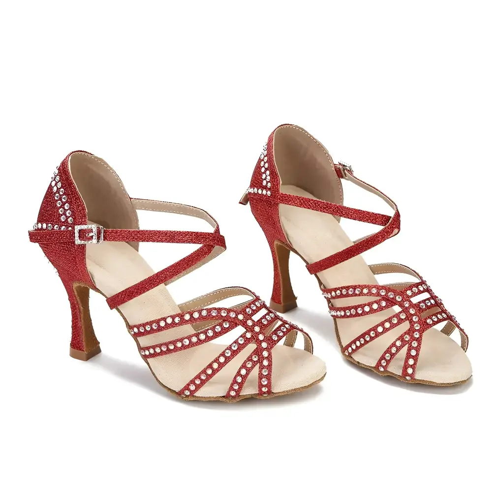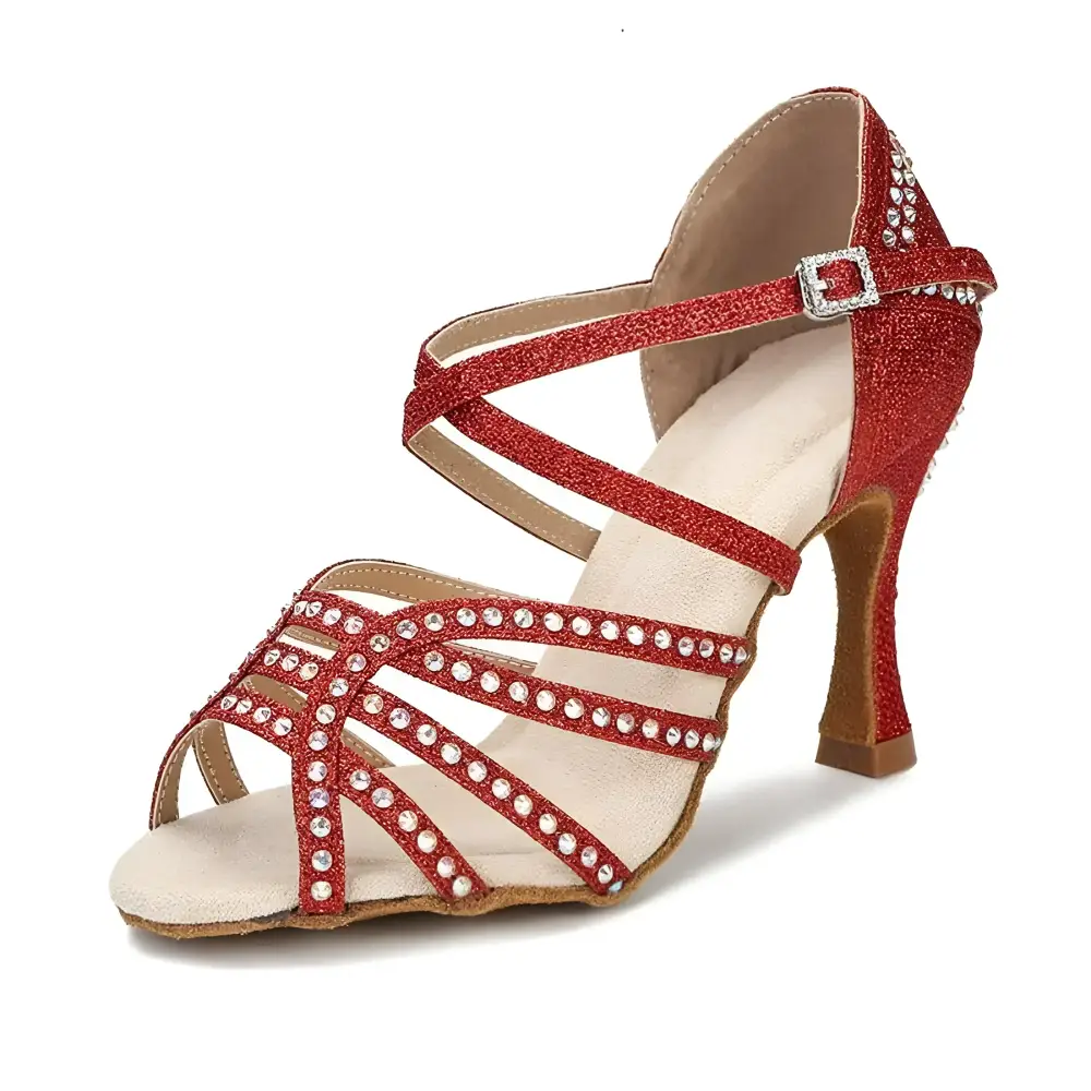 Ces Chaussure de Danse Salseras Rouges sont magnifiquement conçues et sont flexibles et parfaites pour la pratique intense de la Danse. Les strass donne un coté très glamour à cette paire de talons de danse.