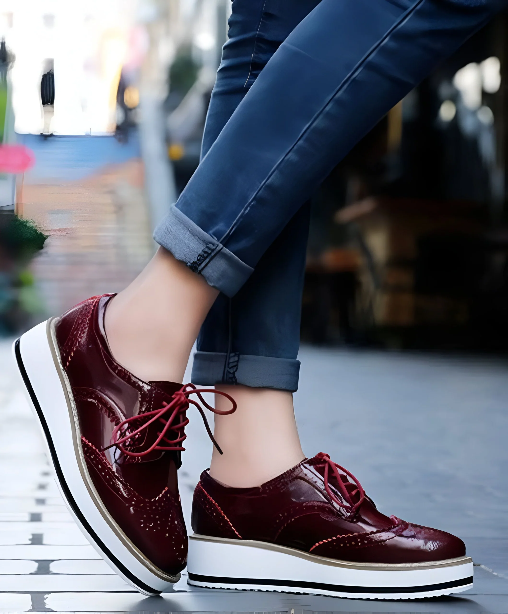 La polyvalence est un atout majeur de ces Oxfords. Imaginez-les associées à un pantalon cigarette et un blazer pour un look professionnel chic, ou avec une robe bohème pour une allure plus décontractée. Elles se marient également parfaitement avec un jean et un pull pour une tenue du quotidien stylée et confortable. La couleur bordeaux intense s’adapte à toutes les saisons et à de nombreuses palettes de couleurs. Ces chaussures s’imposent comme un indispensable de votre garde-robe, un élément versatile qui vous permettra de créer de multiples styles différents, sans jamais perdre en élégance.