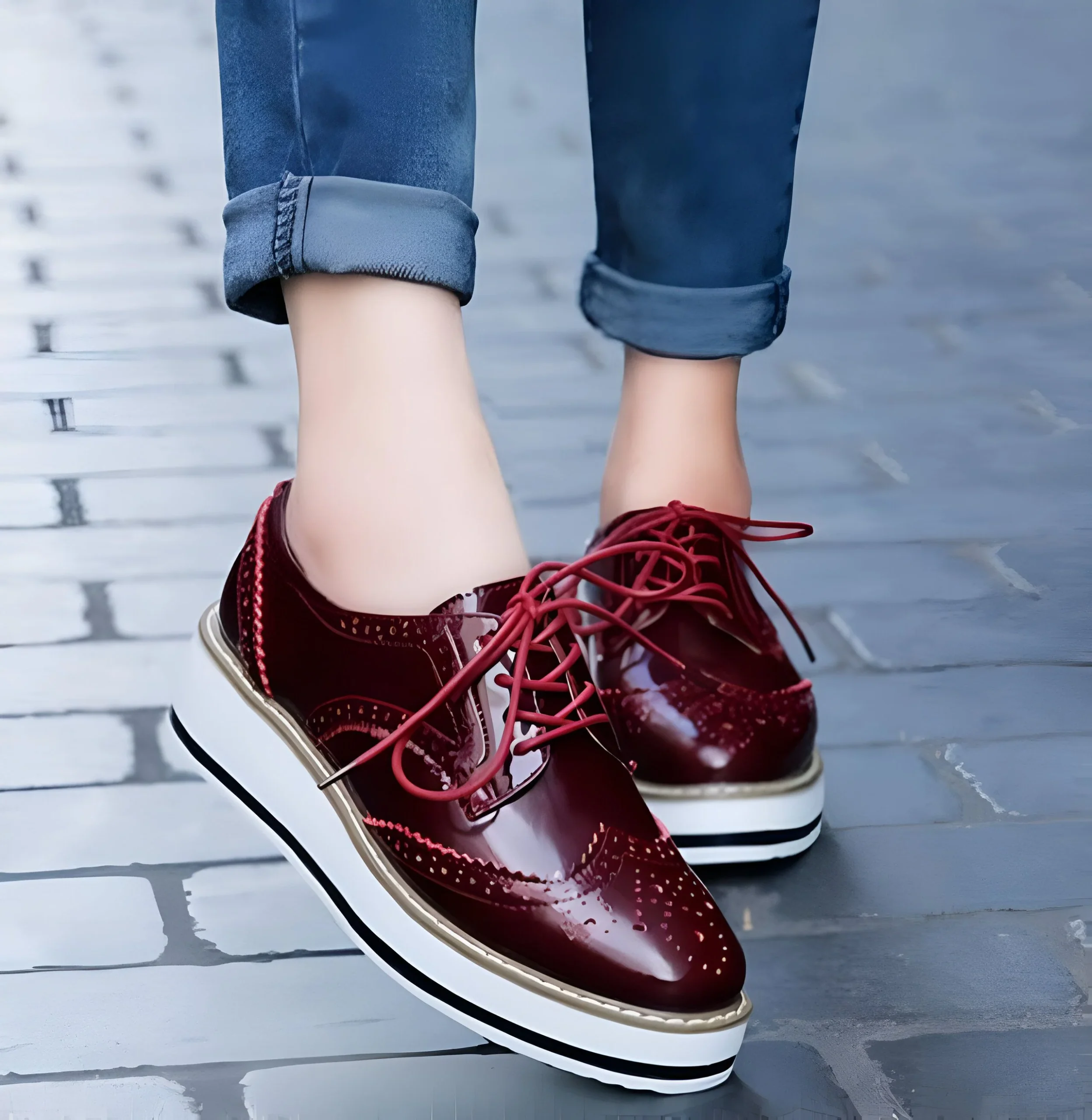 Chaussures Oxford Femme Chic Bordeaux : élégance intemporelle et confort moderne, ces chaussures plates à la fois chic et audacieuses s’adaptent à toutes vos tenues. Une paire polyvalente pour un style affirmé.