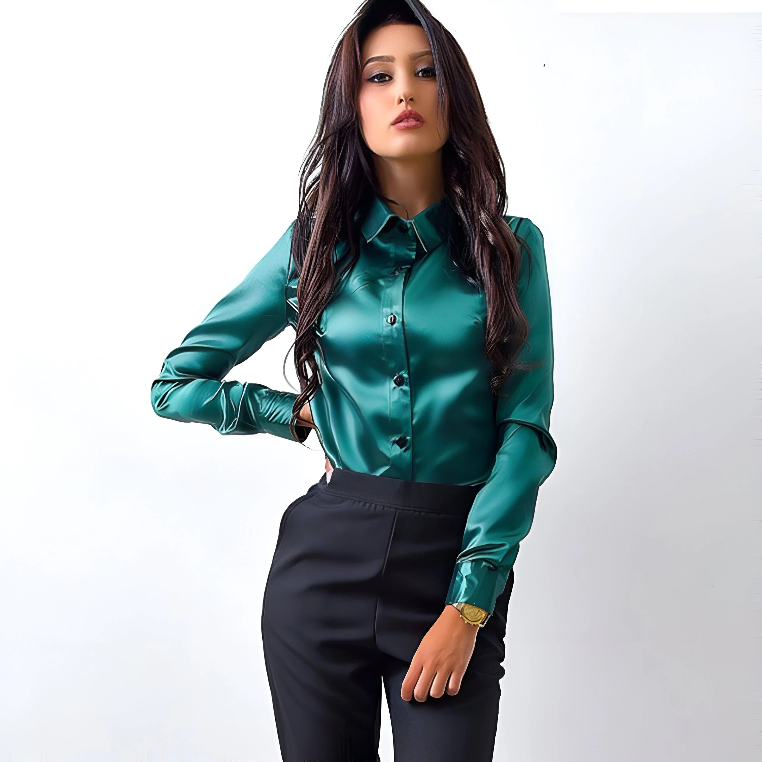 Avec son col rabattu classique et ses manches longues, notre chemise satinée est un véritable caméléon stylistique. Elle s’adapte avec aisance à toutes les occasions : pour une réunion professionnelle, portez-la avec un pantalon tailleur ; pour une soirée, associez-la à un jean et des talons hauts. Sa couleur vive et son tissu luxueux apporteront une touche de raffinement à toutes vos tenues, vous faisant rayonner en toute circonstance. Optez pour une allure chic et moderne en toute simplicité.