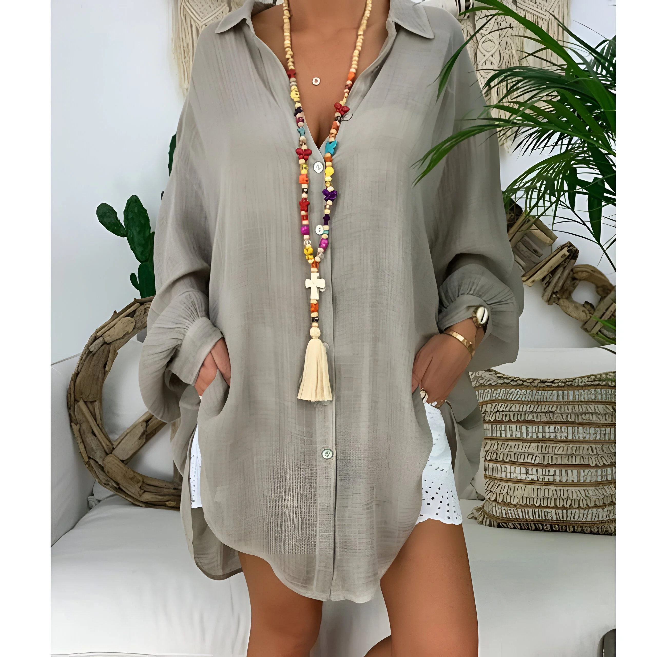 La chemise lin à col rabattu est une pièce maîtresse de la garde-robe féminine. Son style intemporel s’adapte à toutes les occasions. Portez-la avec un jean pour un look décontracté et stylé, ou avec une jupe élégante pour une allure plus sophistiquée. Le col rabattu ajoute une touche d’élégance discrète, parfaite pour sublimer votre allure tout en restant simple et confortable. Sa coupe ample et fluide lui permet d’être portée aussi bien rentrée que déboutonnée par-dessus un débardeur. Laissez libre cours à votre créativité et créez des styles qui vous ressemblent.