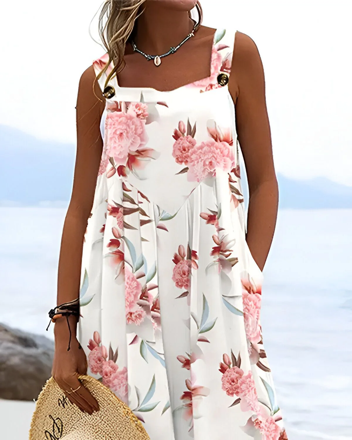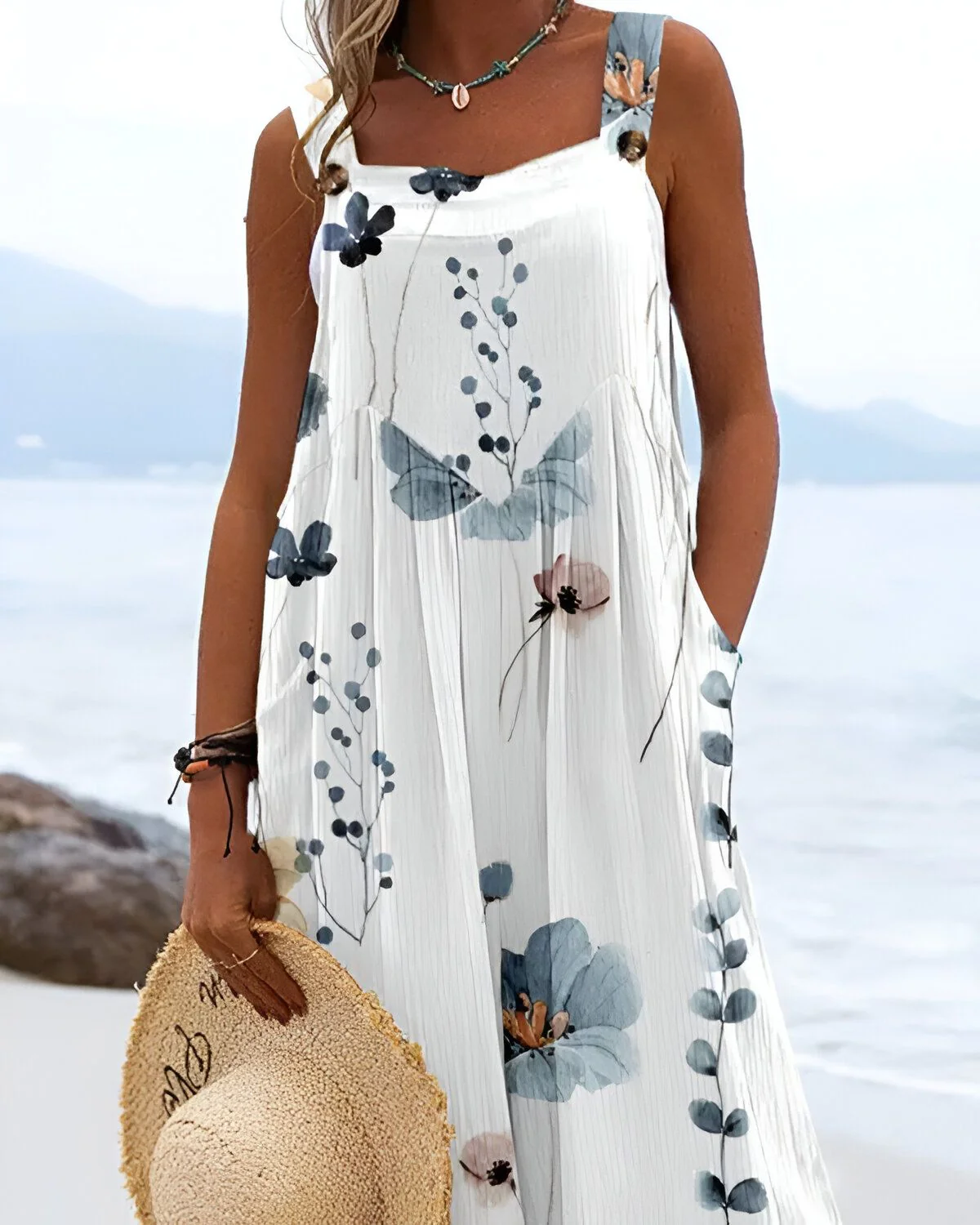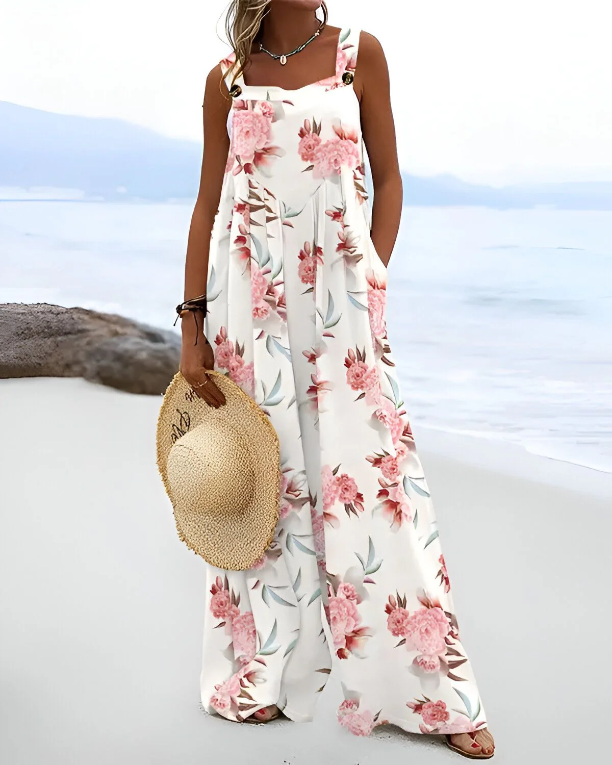 Cette combinaison à bretelles larges à imprimé floral marie avec brio le confort d’un style décontracté à l’élégance intemporelle des motifs floraux. Chaque détail, des boutons délicats aux finitions ruchées, reflète une sophistication discrète pour une allure à la fois décontractée et distinguée.