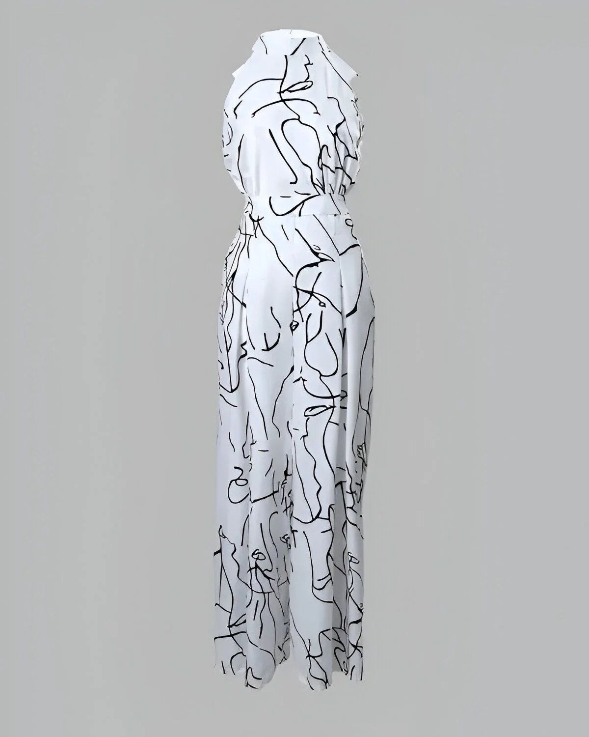 Plongez dans l’univers de la mode avec cette combinaison jambe large à imprimé abstrait. Confectionnée dans un matériau en polyester de haute qualité, elle offre un confort exceptionnel et une sensation de légèreté, idéale pour les journées actives. Son décolleté halter et son design sans manches lui confèrent une touche de féminité subtile, tandis que le motif abstrait ajoute une dimension artistique à votre tenue.