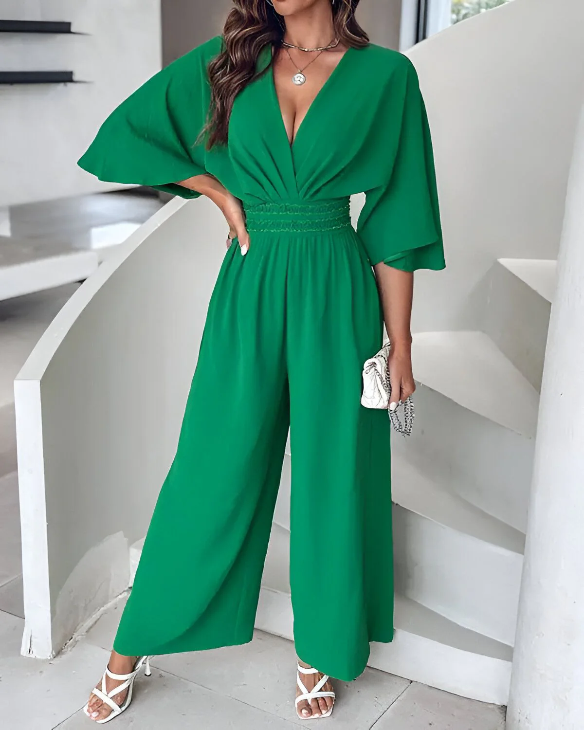 Dévoilez une allure sophistiquée grâce au décolleté plongeant et aux manches trois-quarts. Cette combinaison ajoutera une touche de glamour à chacun de vos mouvements. Que ce soit pour une soirée spéciale ou une journée décontractée, elle rehaussera votre style avec une élégance inégalée.