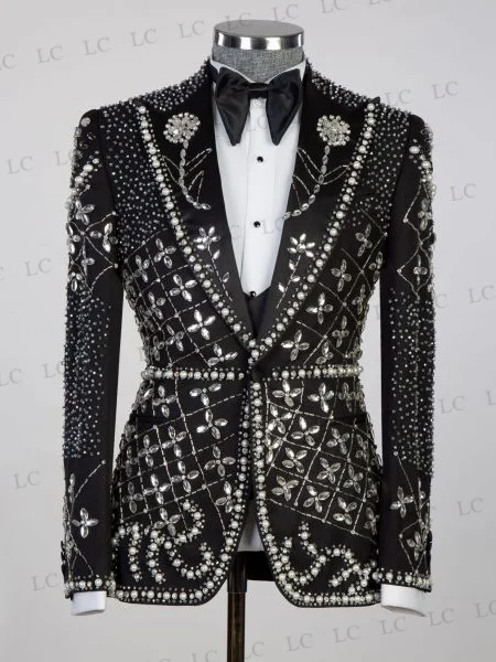 Costumes Diamants Perles Cristaux De Luxe Une Pièce Blazer Un Bouton Revers Formel