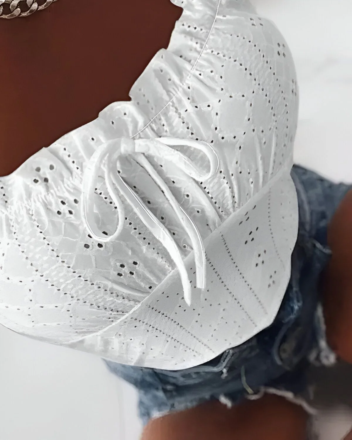 Débardeur à ourlet volanté et broderie à œillets