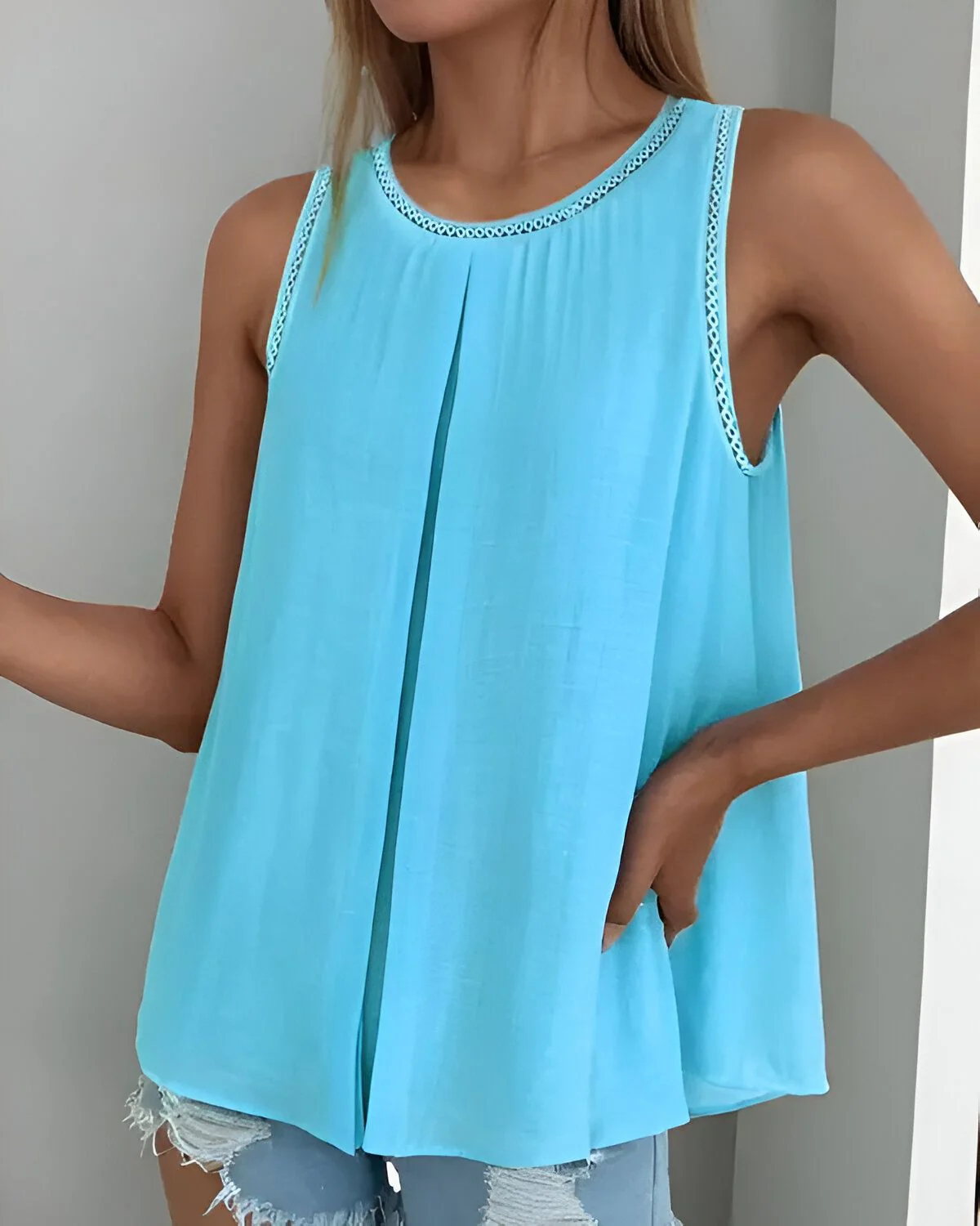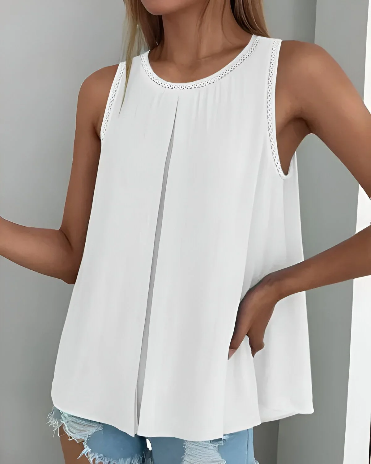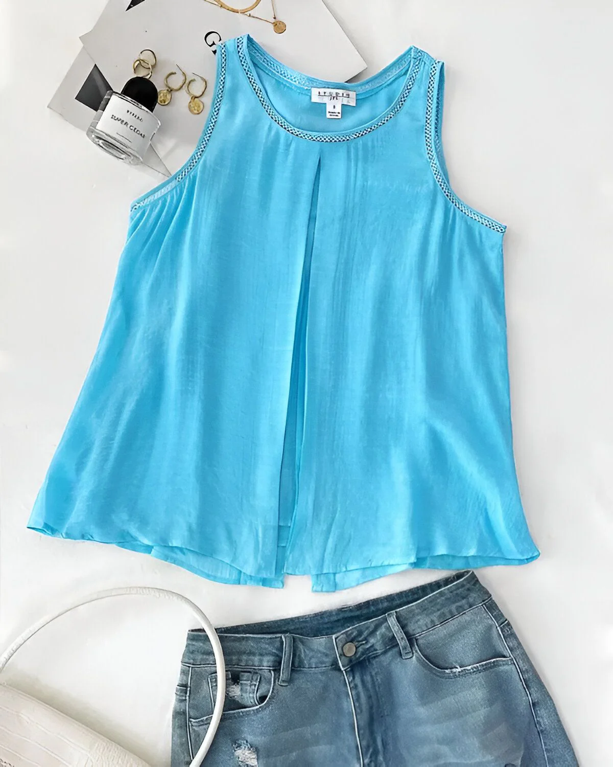 L’encolure ronde et les manches sans manches ajoutent une touche de modernité à ce débardeur. Son motif uni et sa décoration discrète, représentée par une fente subtile, en font un choix élégant en toute occasion.