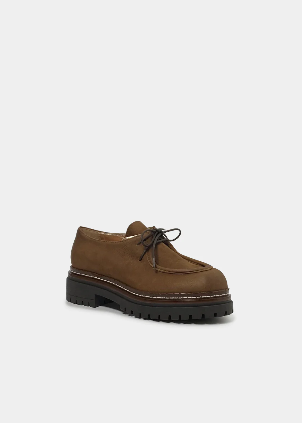 Derbies Clio Tuil modèle Idée-Asia au style à la fois chic et décontracté. Leur cuir doux et mat s’associe à une semelle épaisse crantée pour un look moderne et confortable, idéal au quotidien.