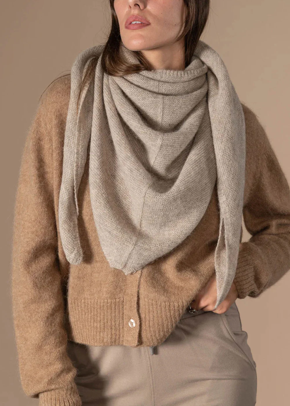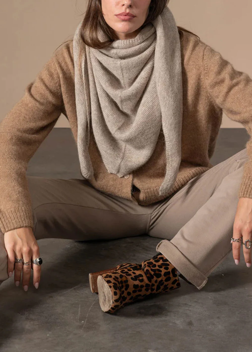 L’écharpe triangle Ann Tuil modèle Cerise, inspirée du bandana, séduit par la douceur exceptionnelle de sa laine et la modernité de sa ligne. Portée nouée ou drapée, elle apporte une touche de chaleur subtile et d’élégance décontractée à toutes les silhouettes.