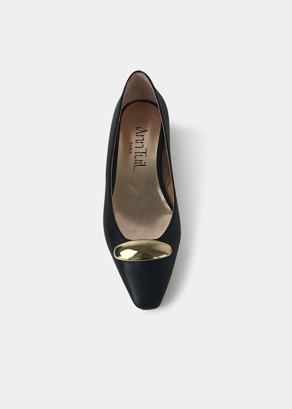 Élégantes et modernes, les escarpins Ann Tuil Elona sont un incontournable de la saison. Avec leur bout carré et leur empiècement métallique doré délicatement placée, elles apportent une touche sophistiquée à toutes vos tenues. Le talon cylindrique offre un confort optimal tout en ajoutant une note de distinction, parfait pour une silhouette chic et contemporaine.