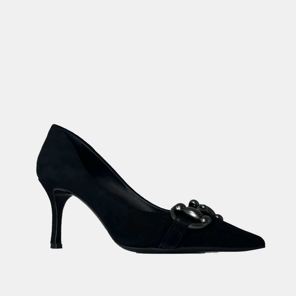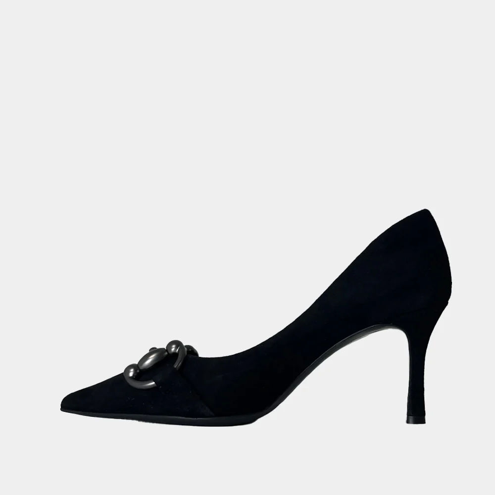 Succombez à l’élégance et au raffinement des escarpins modèle Mel en velours noir. Découvrez toute la collection de chaussures sur Ann Tuil.