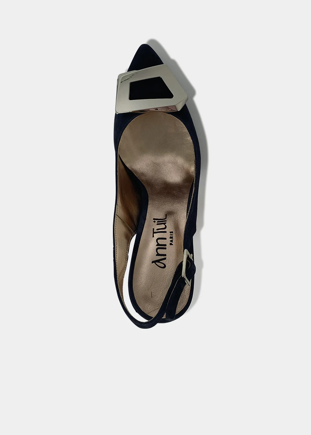 Faites sensation avec nos escarpins slingback à talons Ann Tuil modèle Actual-A-Fezra en velours marine !