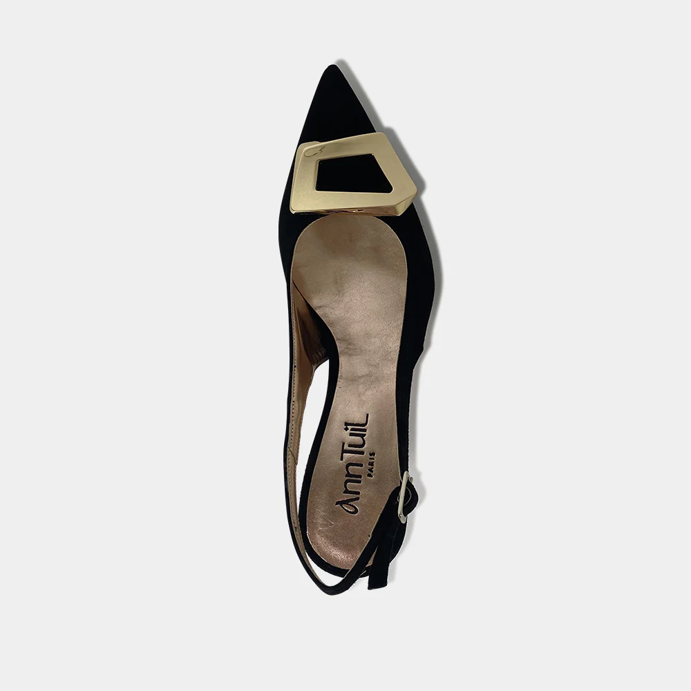 Faites sensation avec nos escarpins slingback à talons Ann Tuil modèle After-A-Eiver en velours noir !