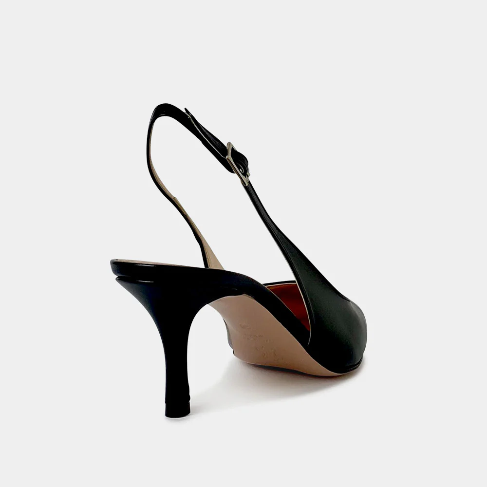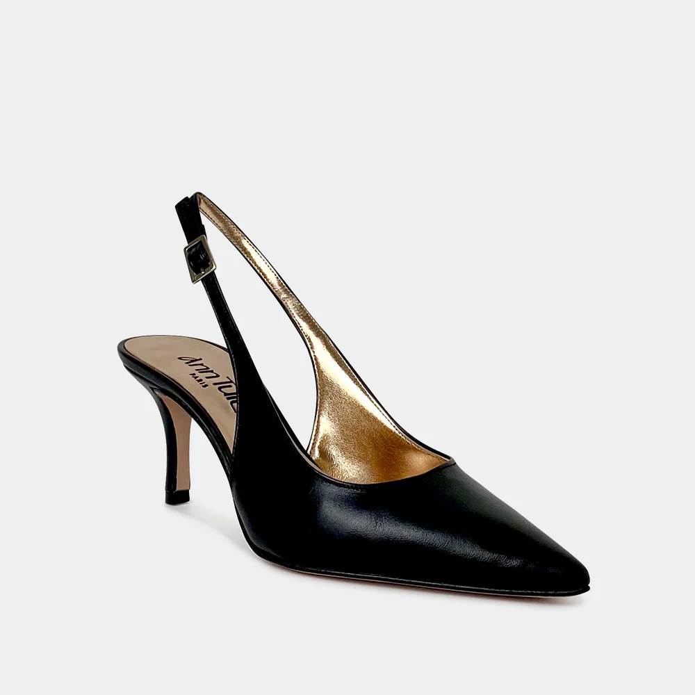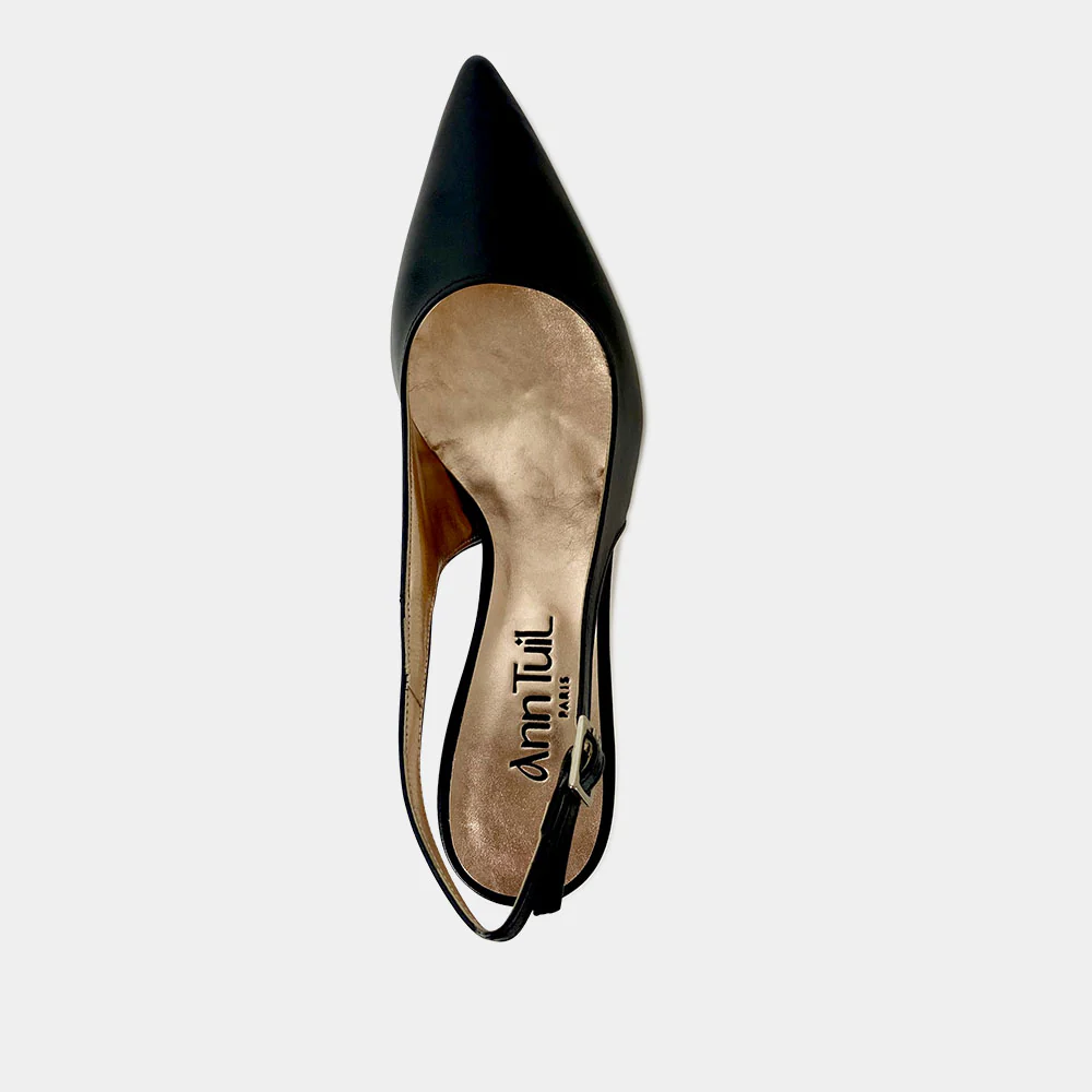 Succombez à l’élégance et au raffinement des escarpins slingback modèle Astella en cuir noir. Découvrez toute la collection de chaussures sur Ann Tuil.