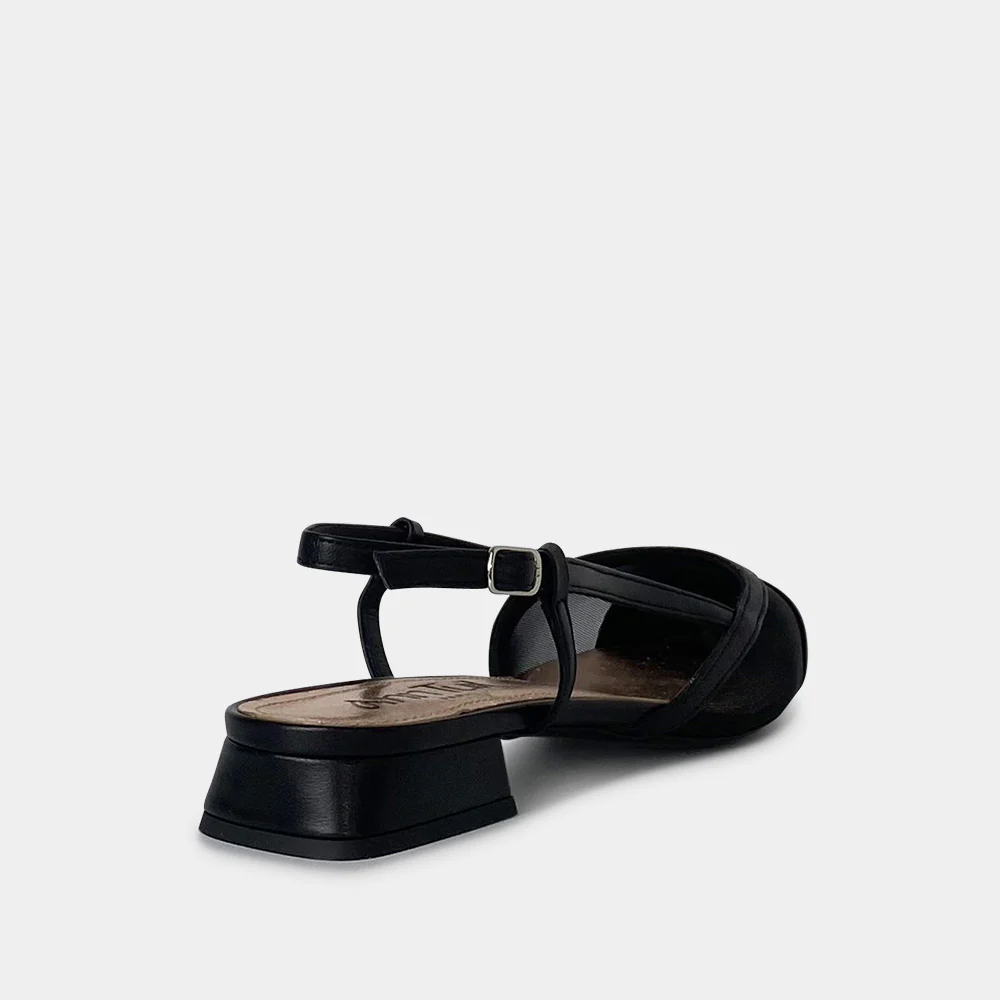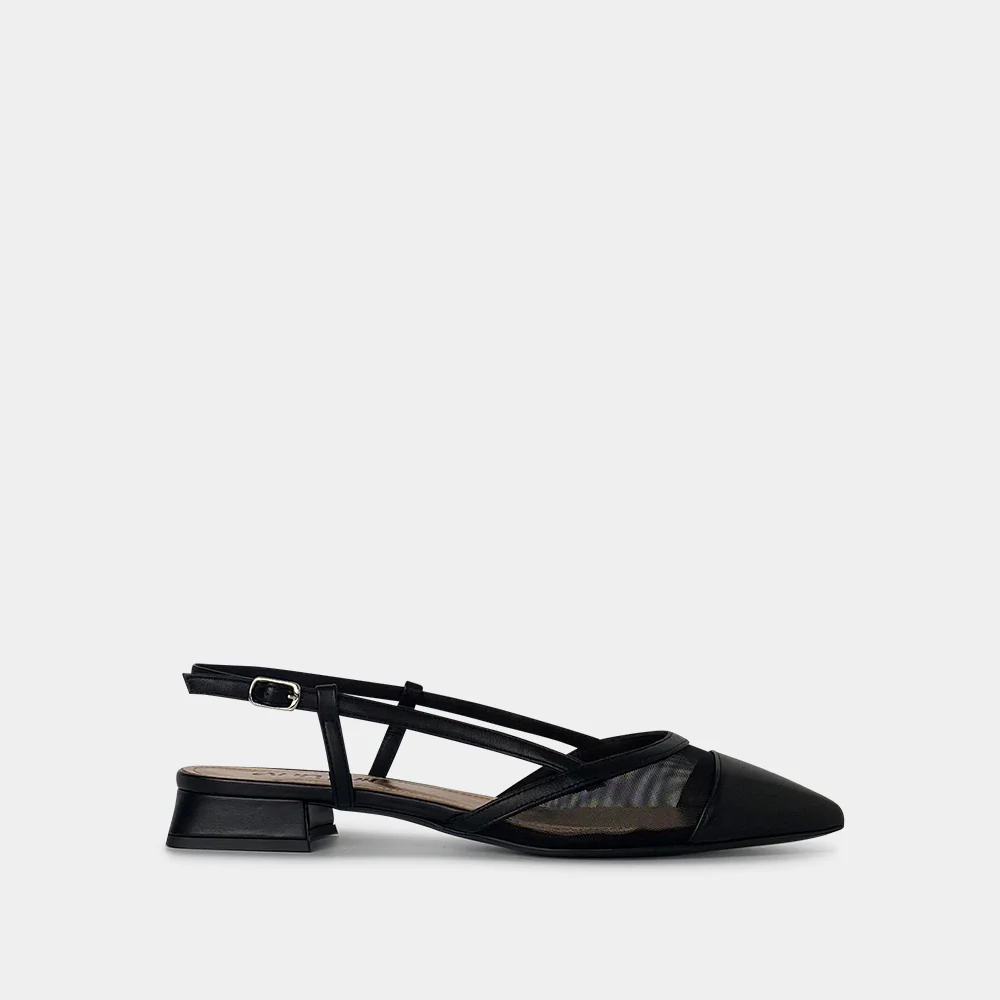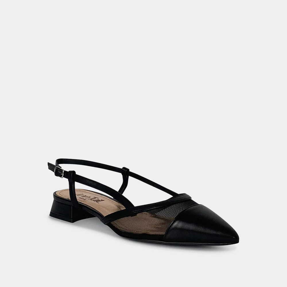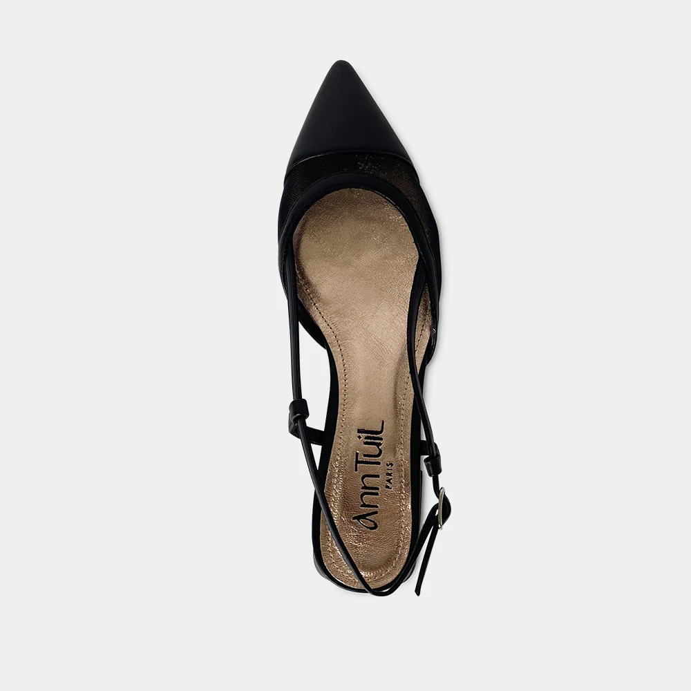Confortables et élégantes, craquez pour nos escarpins slingback plats Ann Tuil modèle Mila en cuir noir.