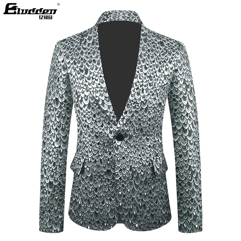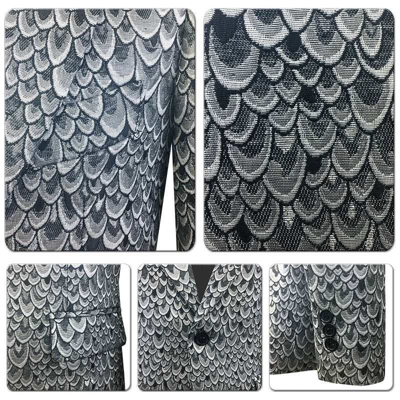 Soyez le premier à laisser votre avis sur “Figure écailleuse pour hommes Blazer Jacquard écailles de poisson motifs de peau de serpent costume veste de texture”