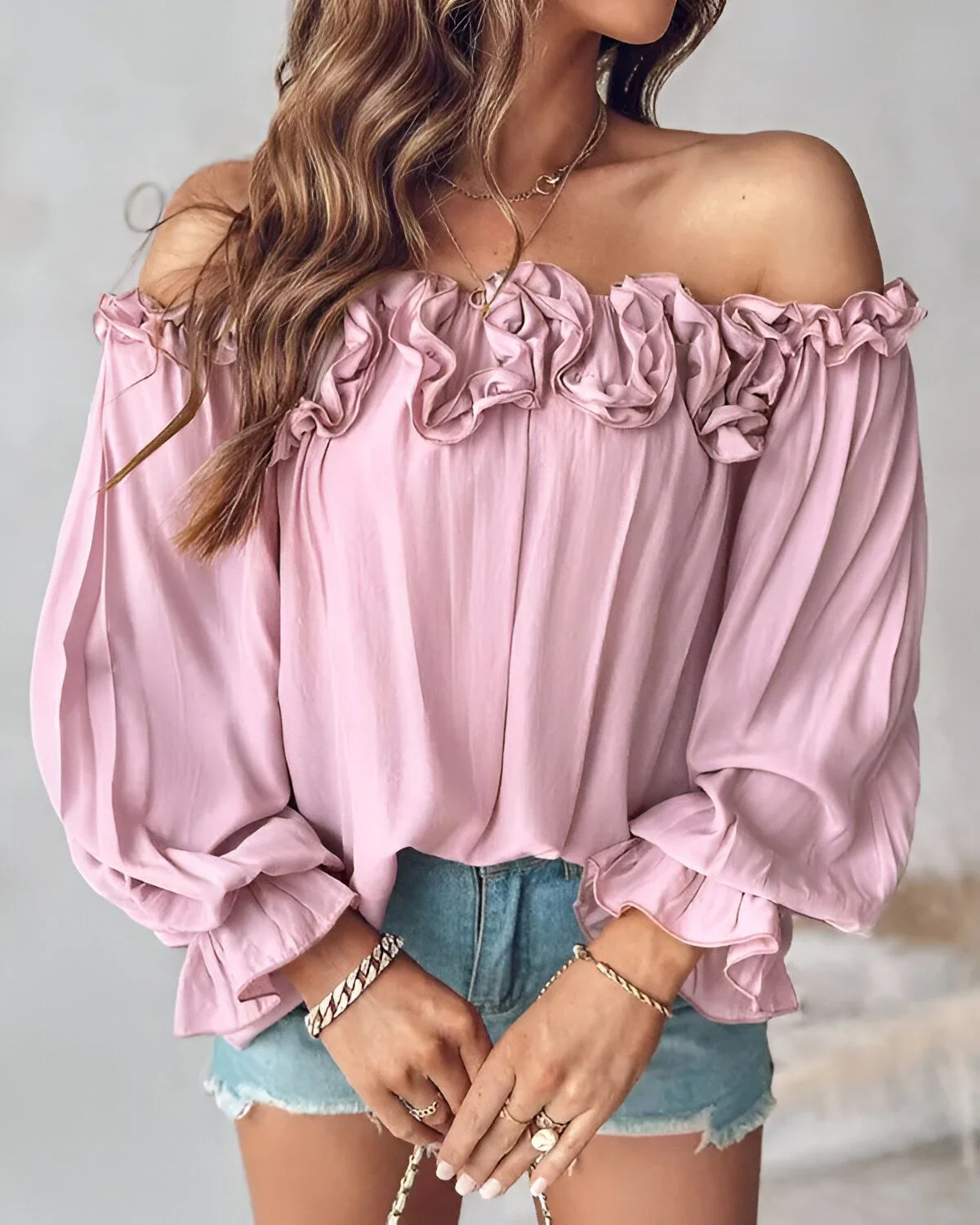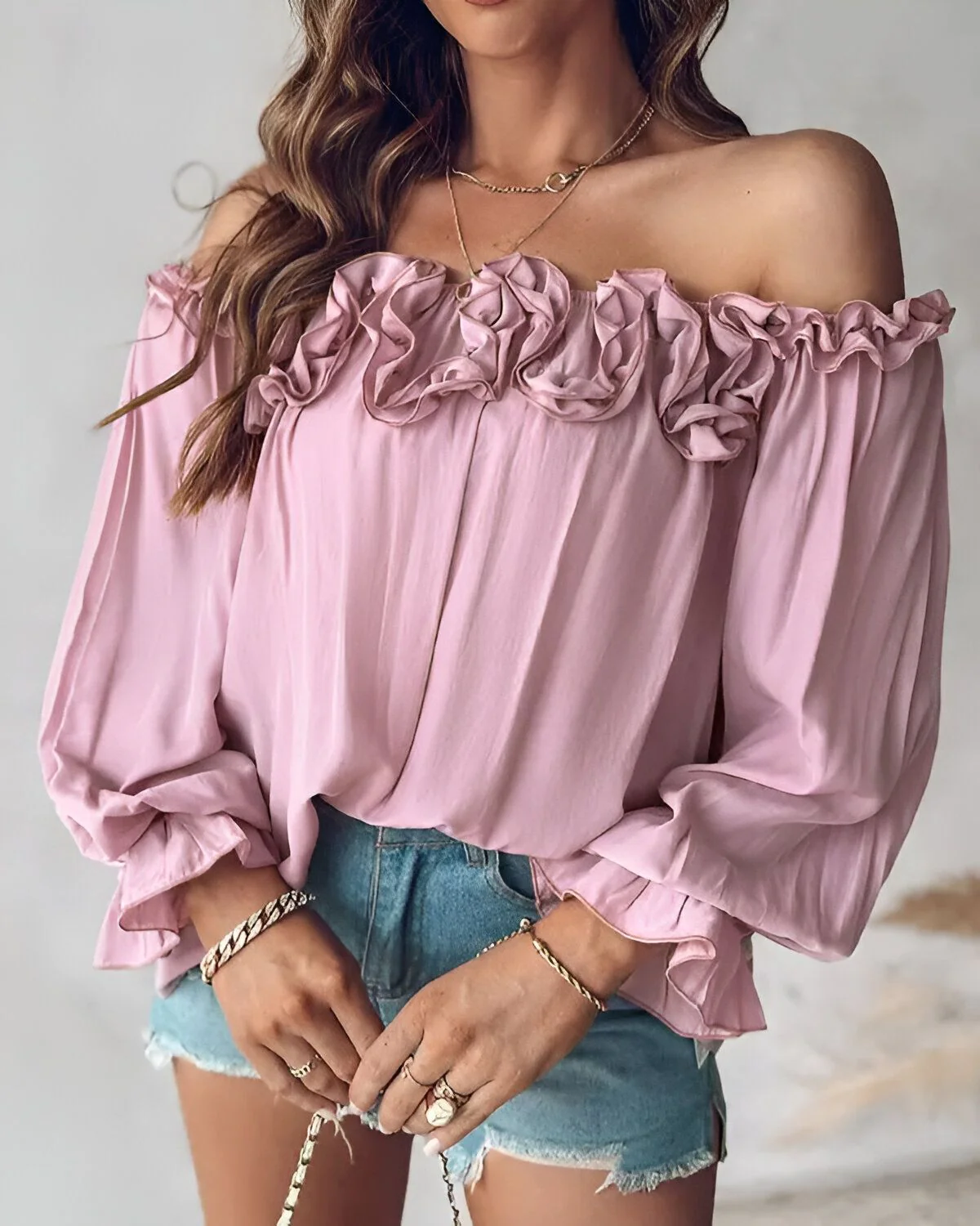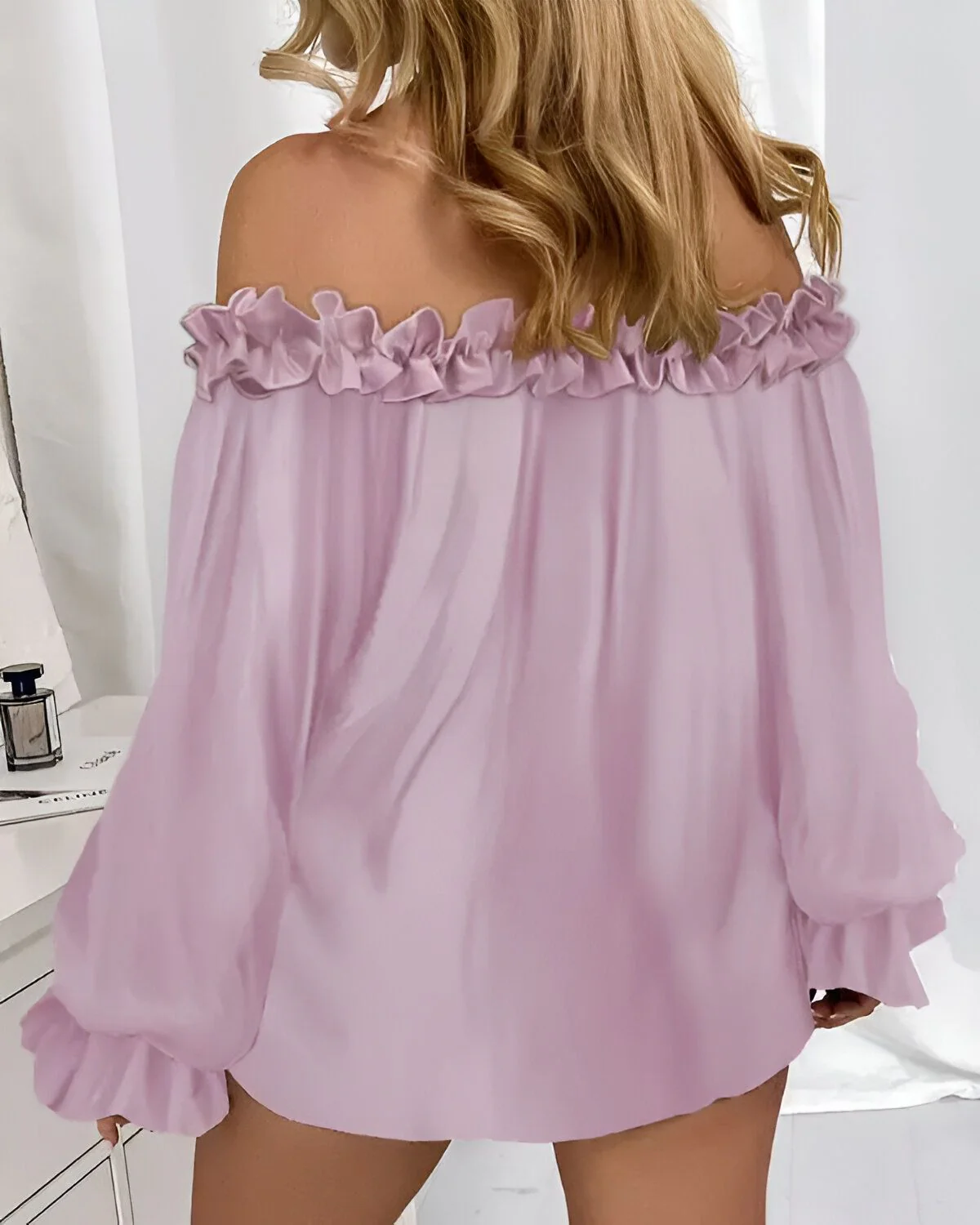 Les détails soignés de ce haut ajoutent une touche de raffinement à chaque tenue. Les volants délicats autour de l’ourlet apportent une note féminine et romantique, tandis que le décolleté hors de l’épaule dévoile subtilement la peau pour un effet sensuel. Exprimez votre style avec élégance et sophistication grâce à ce chemisier à la fois tendance et intemporel.