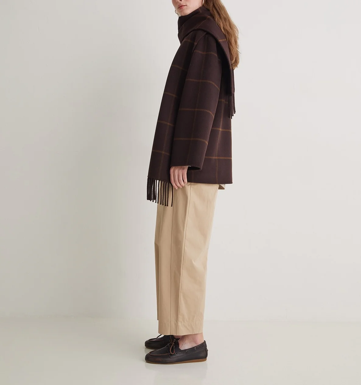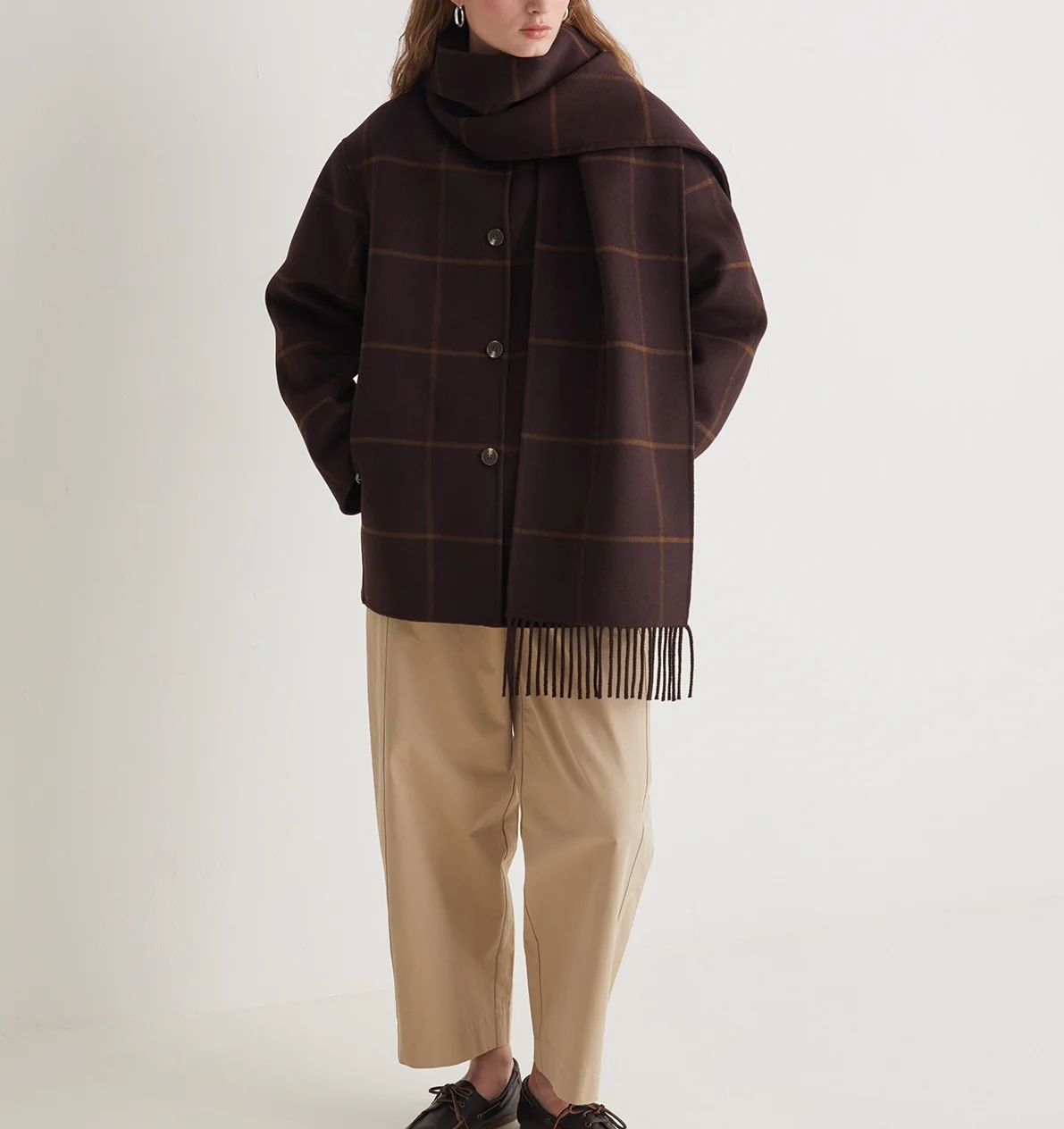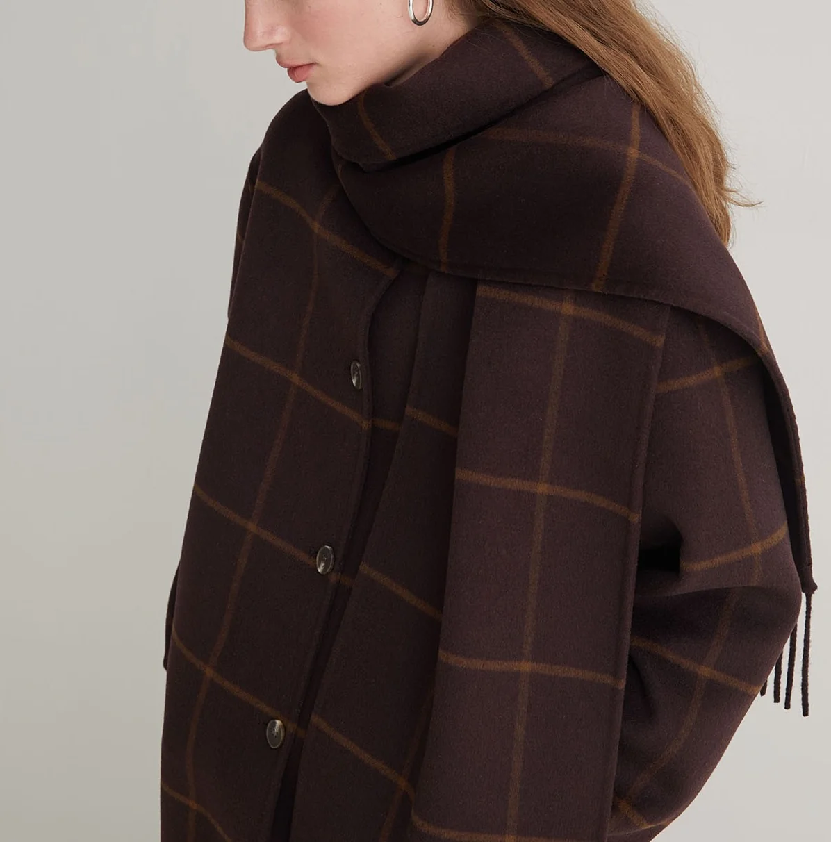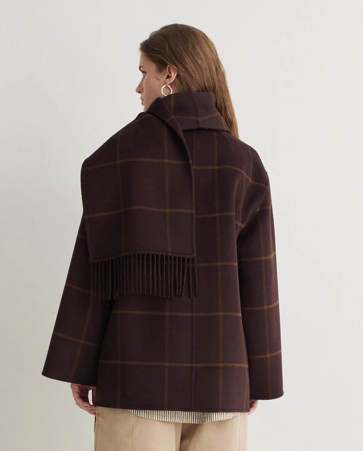 Tissu double face en laine et fibres recyclées. Imprimé à carreaux.
