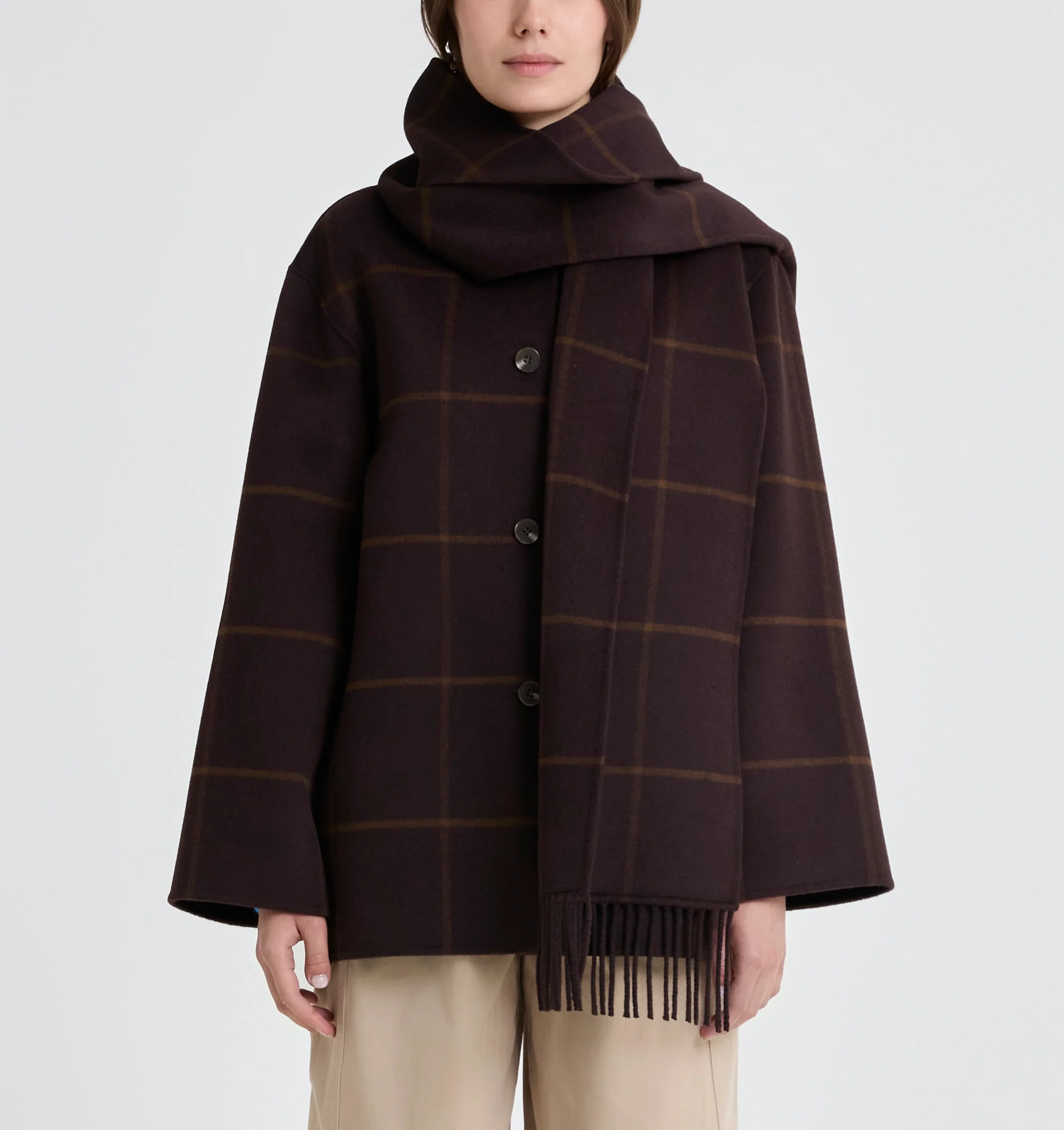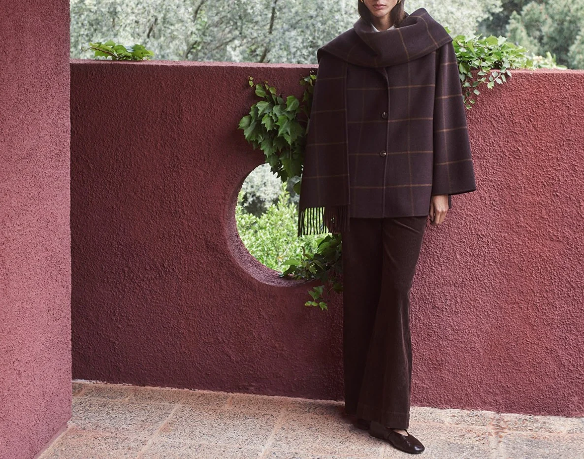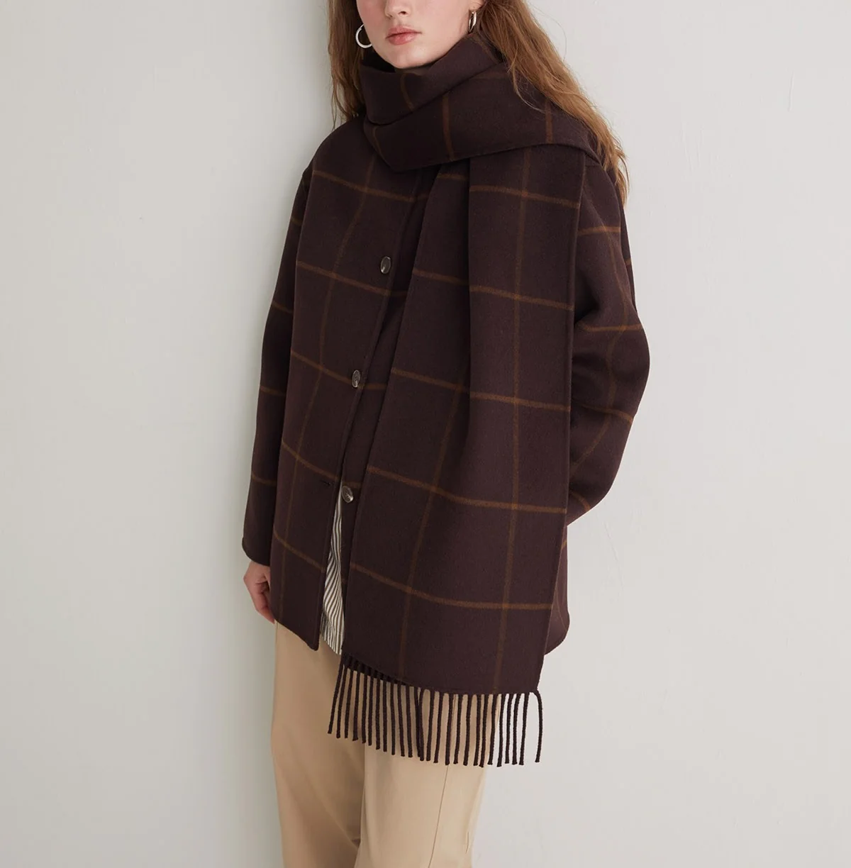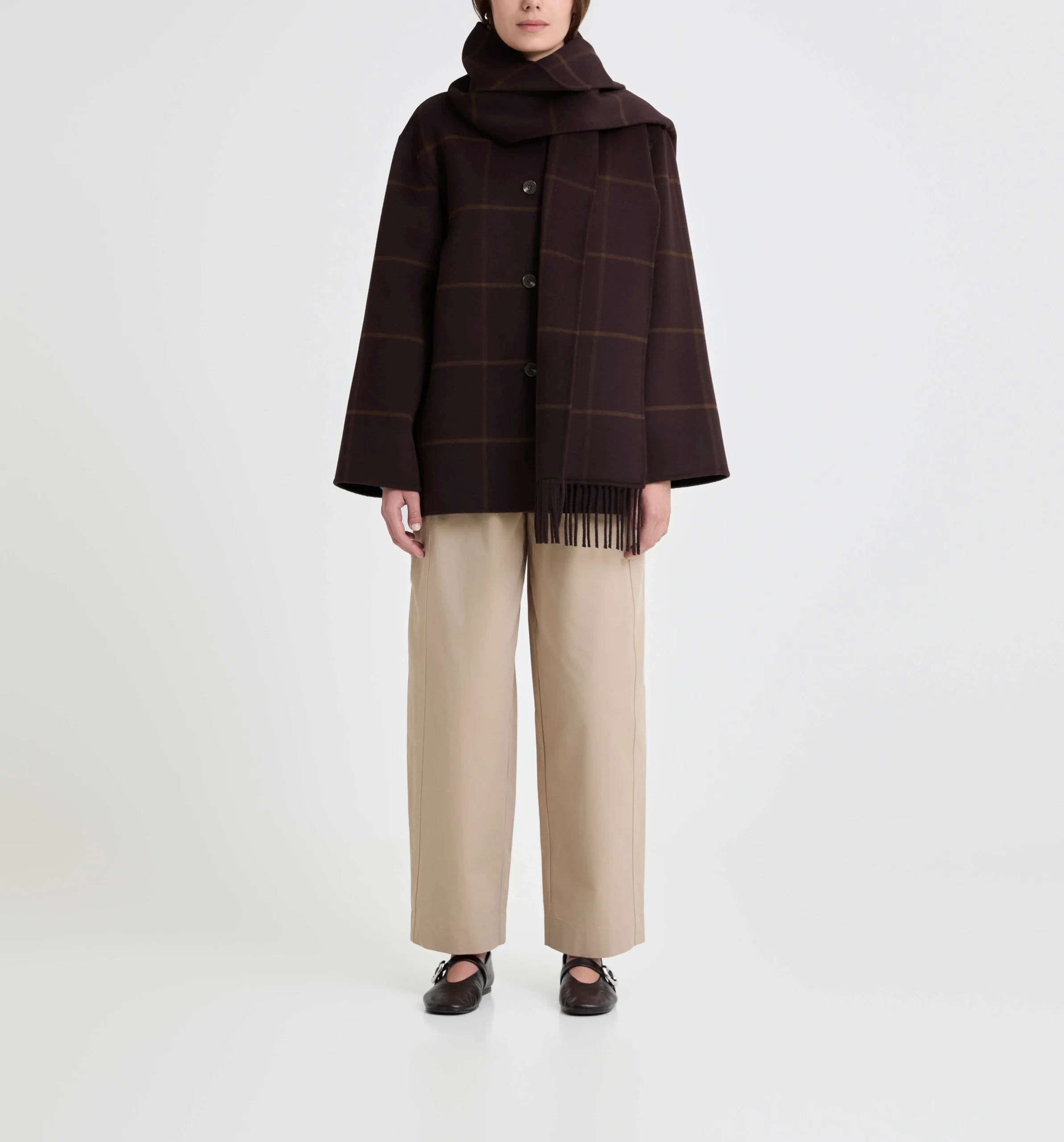 Tissu double face en laine et fibres recyclées. Imprimé à carreaux.