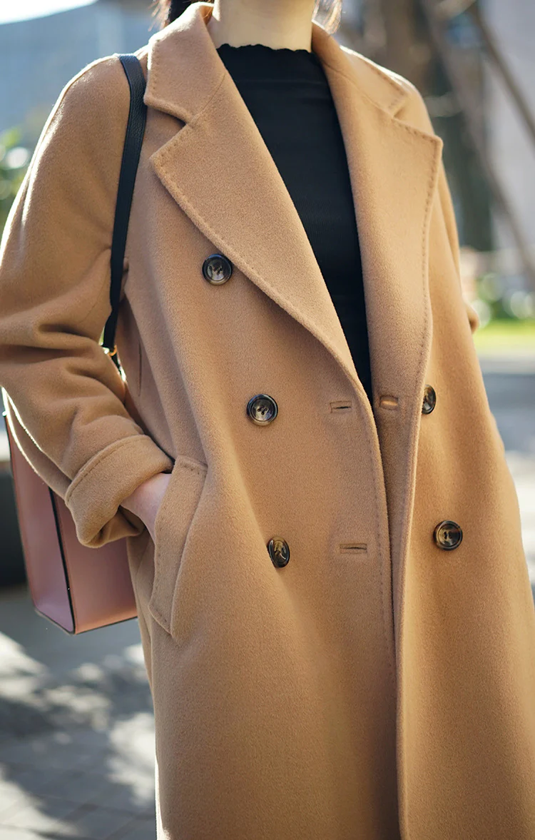 Découvrez Louise, un manteau double boutonnage en cachemire conçu pour les femmes en quête d’élégance et de confort. Avec sa coupe fluide et son tissu haut de gamme, il vous assure un look sophistiqué tout en vous gardant bien au chaud. Sa douceur inégalée et son design intemporel en font une pièce maîtresse de votre garde-robe hivernale.