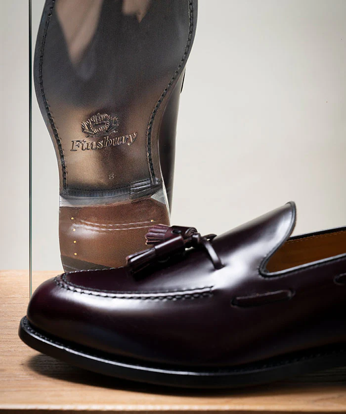 Entretien : Le cuir étant une matière vivante, il est primordial de l’hydrater régulièrement afin d’optimiser sa souplesse mais aussi son imperméabilité et sa longévité. La bonne fréquence est de cirer ses souliers tous les 4 à 5 ports. En respectant les règles d’alternance (REGLE 2) cela équivaut à cirer vos souliers 2 à 3 fois par mois en moyenne voire toutes les semaines si vous n’avez que deux ou trois paires. Voici une chaussure pour homme de notre collection classic range qui devrait retenir toute votre attention. Vous êtes un jeune cadre dynamique et vous souhaitez pouvoir allier à la fois l’élégance et le confort ! Cette chaussure mocassin Olden Bordeaux Lisse est donc faite pour vous. Notre Enseigne Finsbury, spécialiste de la chaussure pour homme cousue main, a à cœur d’apporter dans chacun de ses modèles modernité et originalité. Nous attachons une très grande importance à chaque détail de fabrication afin de vous assurer « Élégance, robustesse et raffinement ». Les trois mots qui caractérisent toutes nos collections. C’est la raison pour laquelle nous sommes pleinement convaincus que cette paire de chaussures Olden Bordeaux Lisse de notre gamme Classic Range saura vous plaire. Ce modèle en cuir, sans lacet avec sa languette sous patte, confère à ce soulier un style à la fois chic et décontracté. Vous le porterez aussi bien au bureau qu’en week-end. Il deviendra vite un élément indispensable de votre garde-robe.