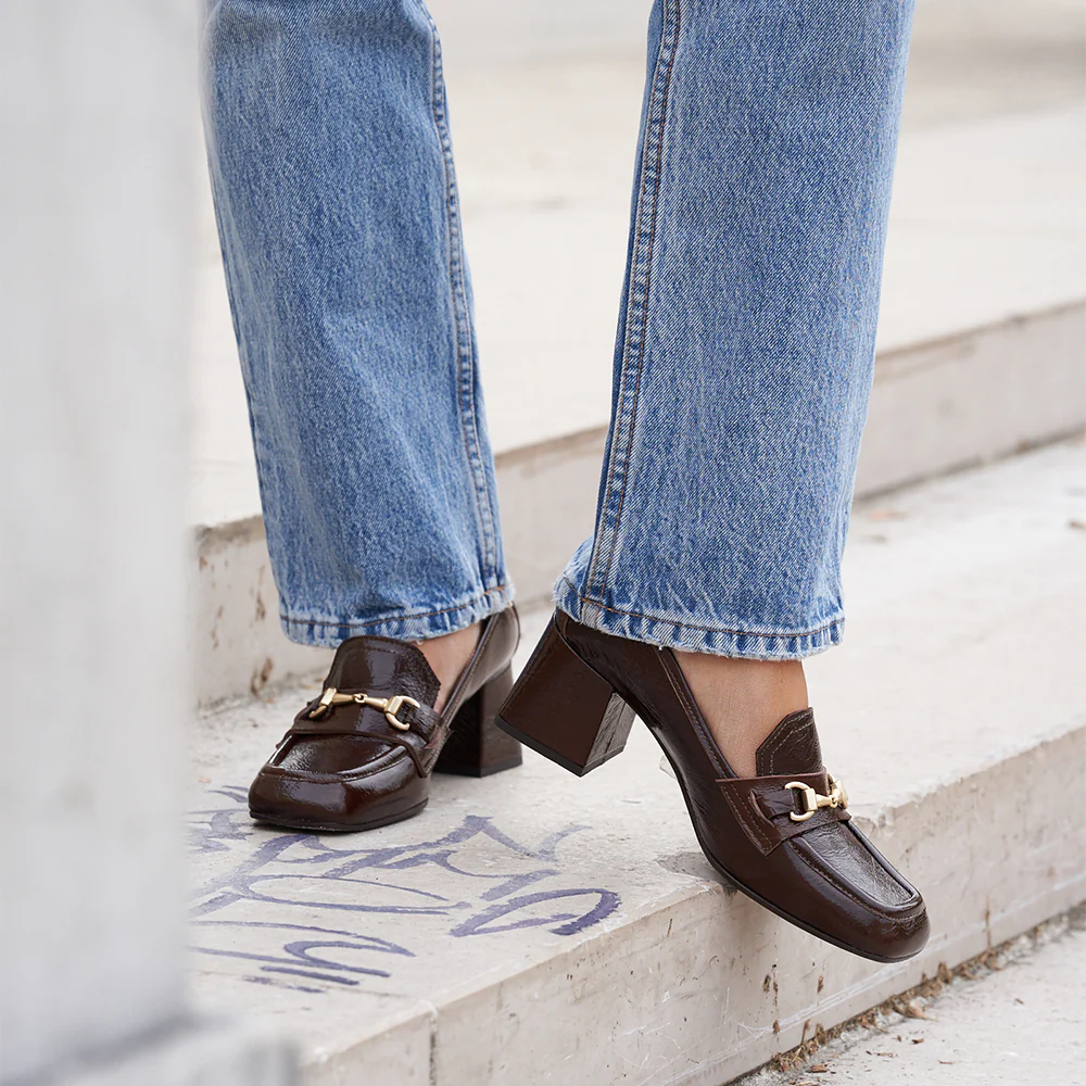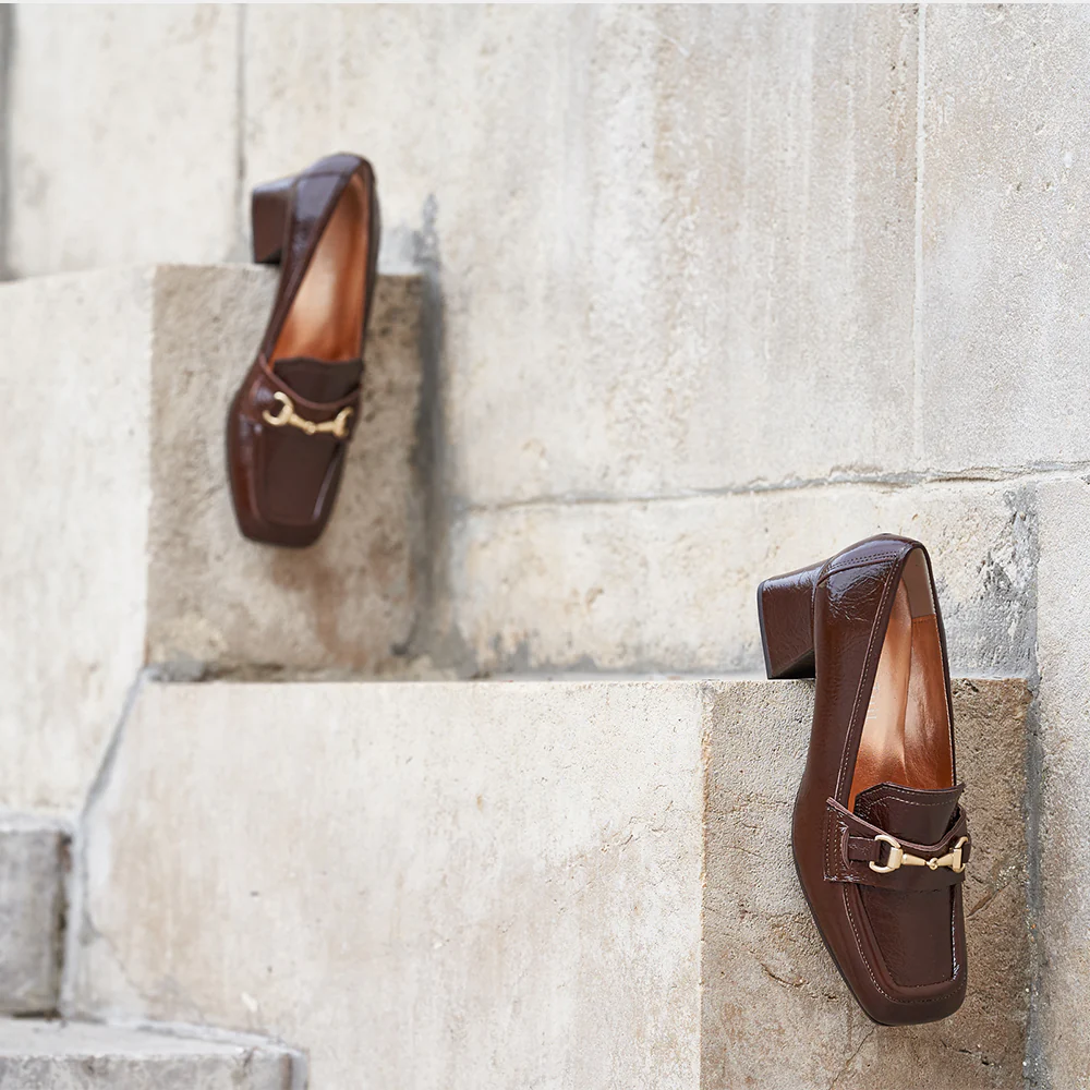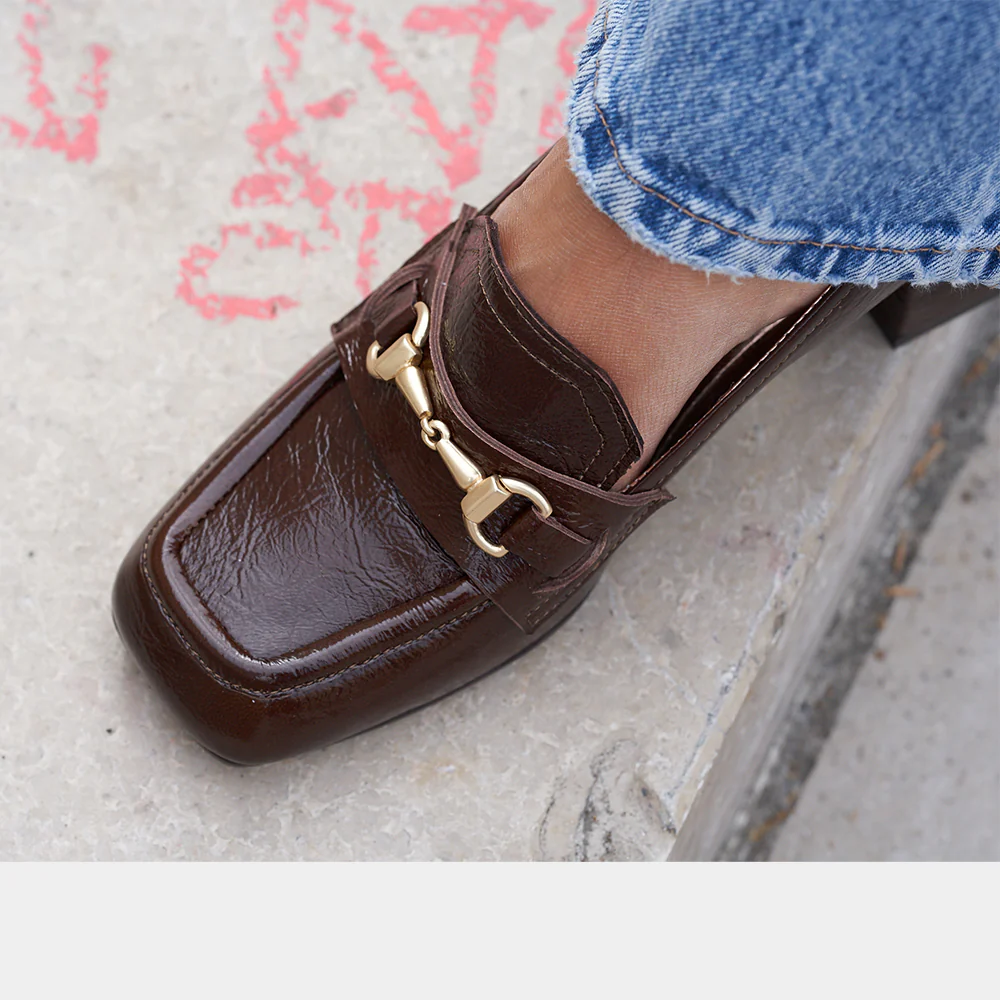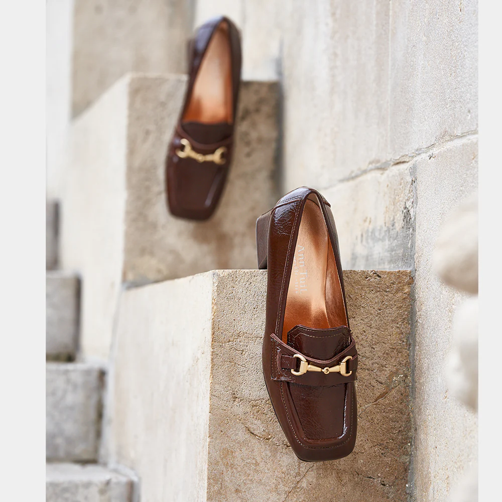 Craquez pour l’élégance des mocassins à talons Ann Tuil Moderne en cuir vernis marron. Découvrez toute la collection de chaussures sur Ann Tuil.