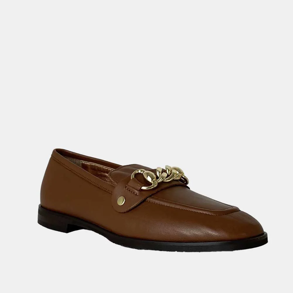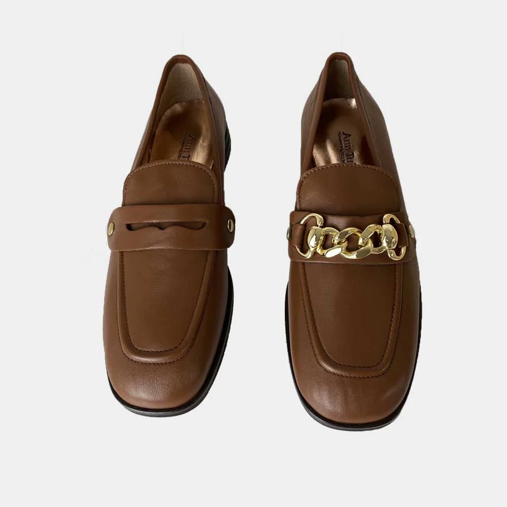 Craquez pour les mocassins plats Ann Tuil Siel Bis en cuir camel. Grace à sa bride amovible, vous pouvez allier deux styles avec la même paire! Découvrez toute la collection de chaussures sur Ann Tuil.
