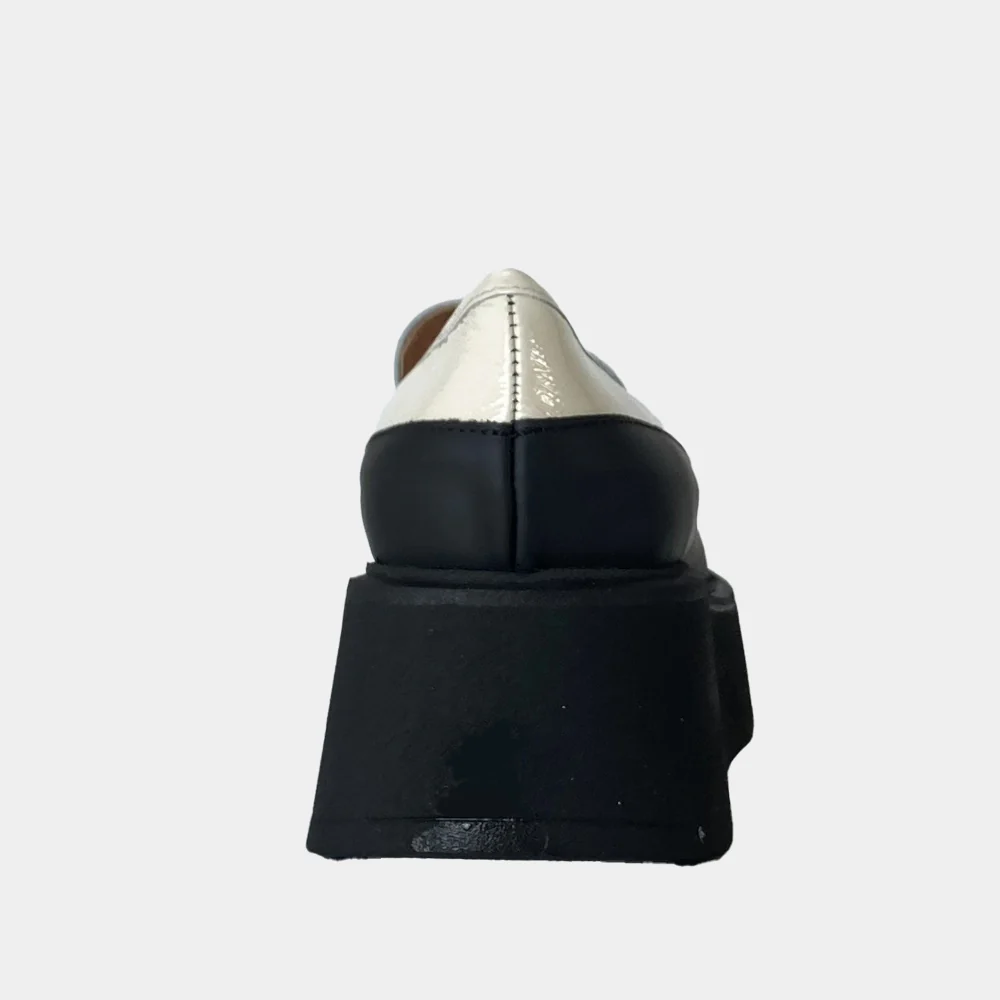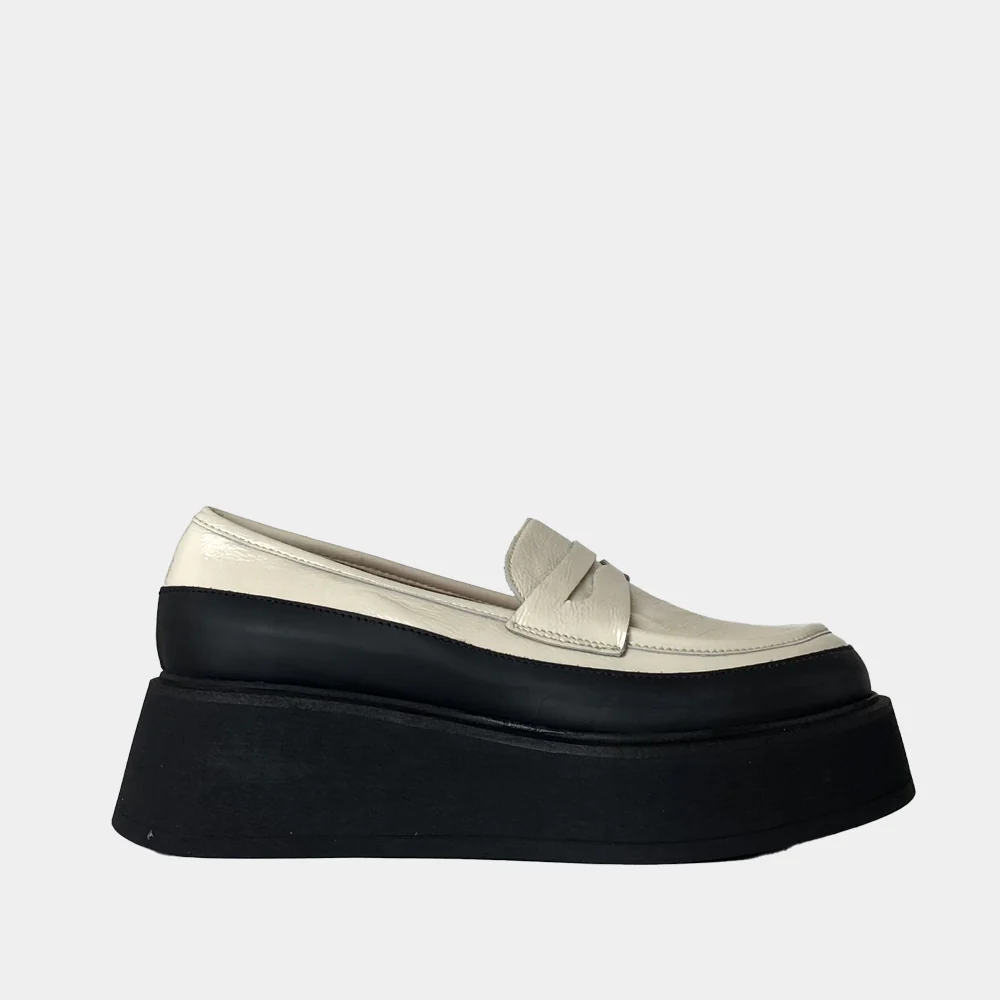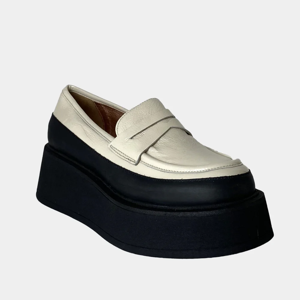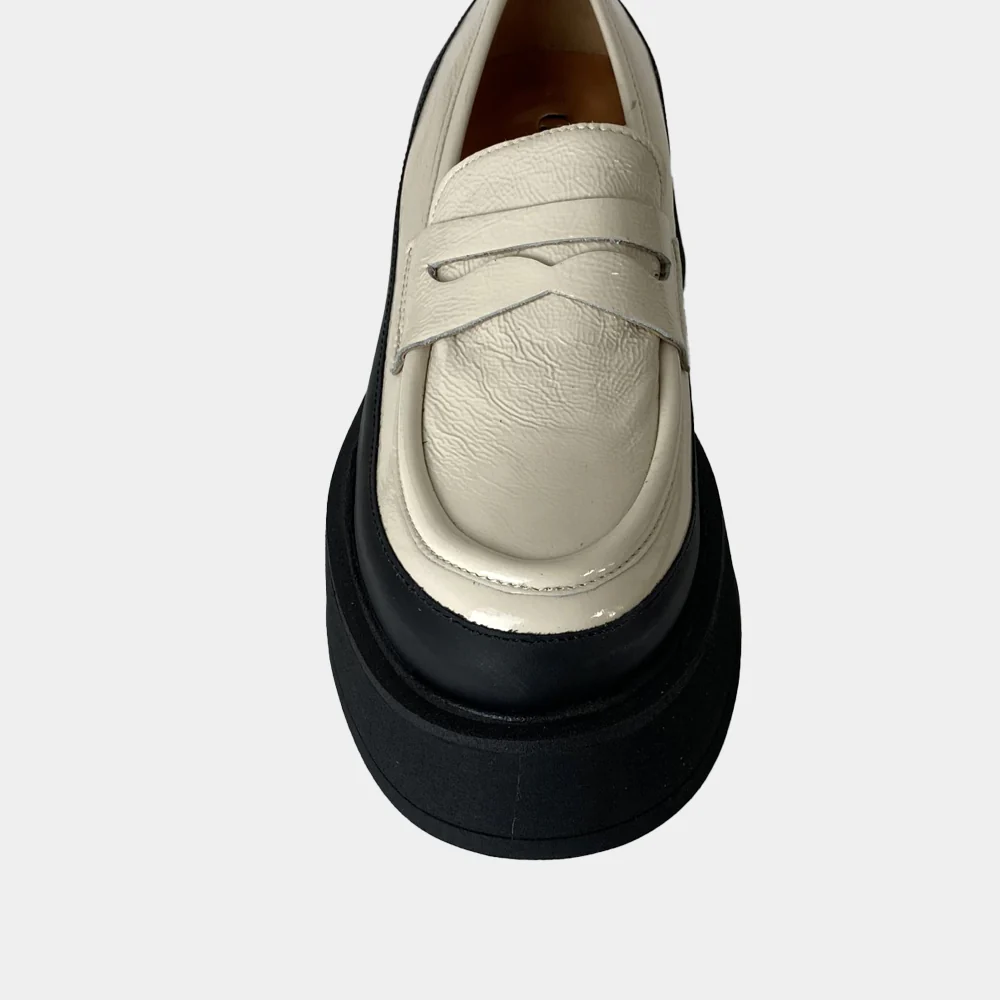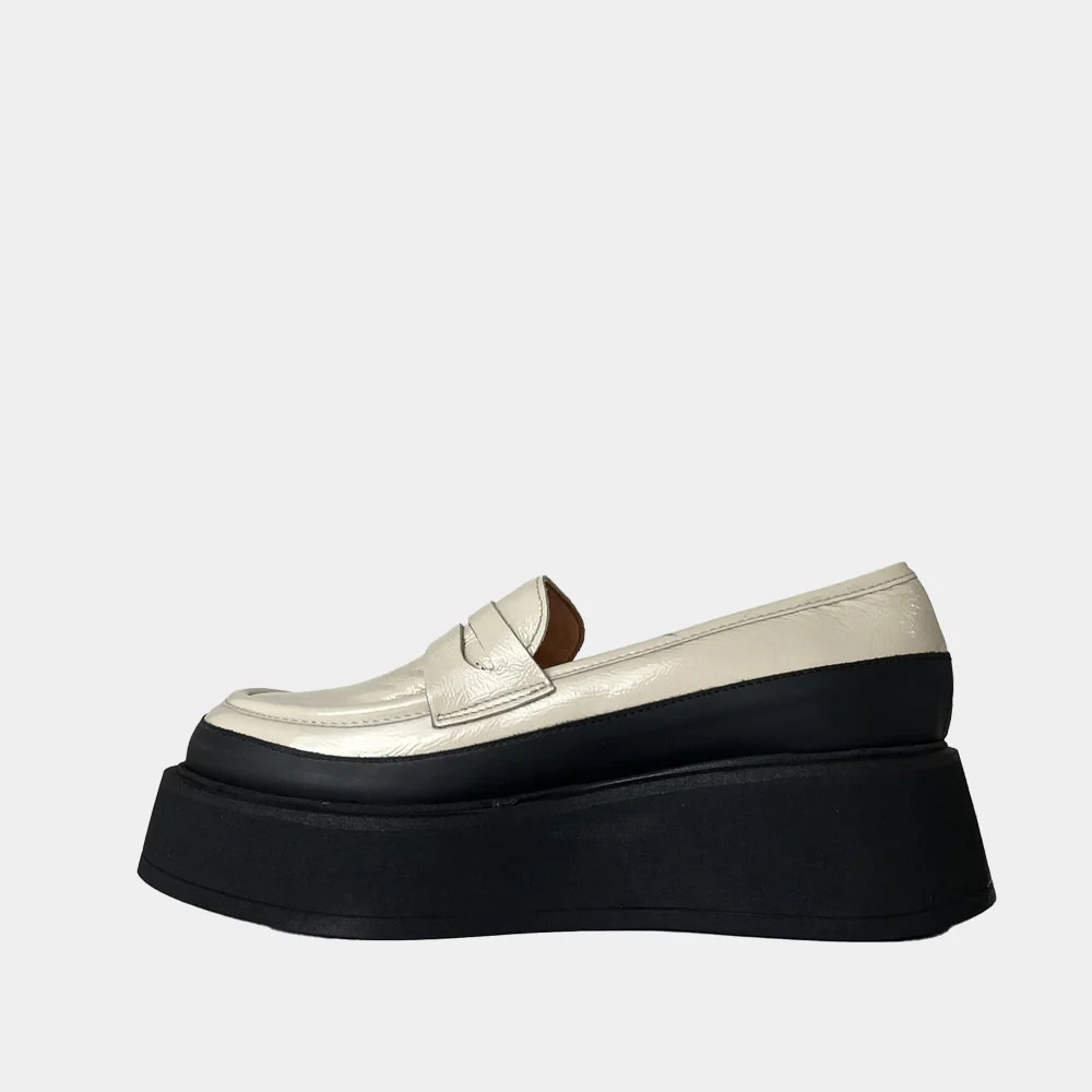 Originale et tendance, craquez pour les mocassins à plateforme Clio Tuil modèle Icone en naplak blanc cassé.