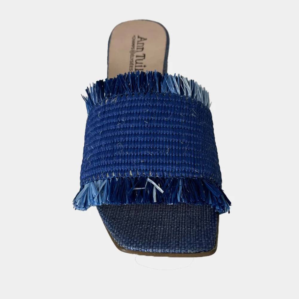 Originales et tendances, craquez pour les mules à talons Ann Tuil Acide en raffia bleu jeans. Découvrez toute la collection de chaussures sur Ann Tuil.
