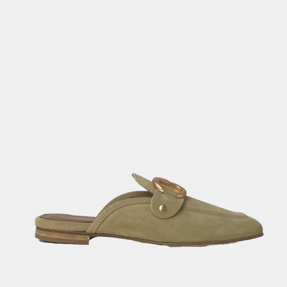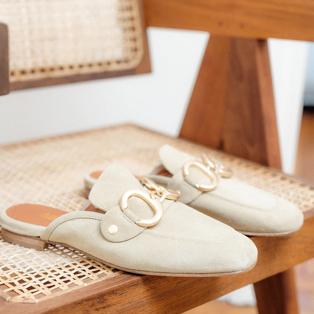 Craquez pour les mules plates Ann Tuil Story en velours sable. Grace à son mors amovible, vous pouvez allier deux styles avec la même paire! Découvrez toute la collection de chaussures sur Ann Tuil.