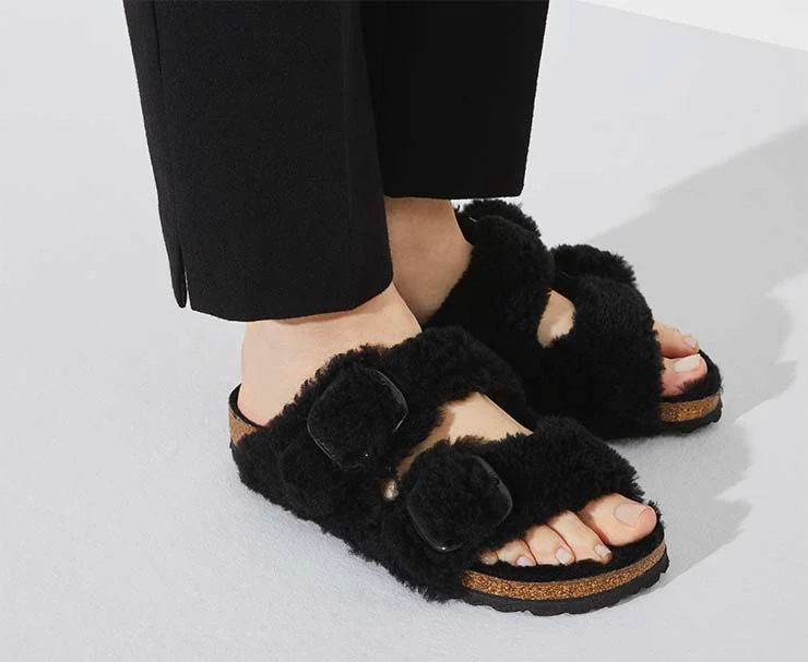 La marque Birkenstock vous accompagne cette saison avec des modèles de chaussures femmes ultra confortables et très tendance. Les mules Birkenstock Arizona BB Shearling en teddy eggshell et fourrure noire s’accorderont avec toutes vos tenues. Découvrez toute la collection de chaussures Birkenstock sur Ann Tuil.