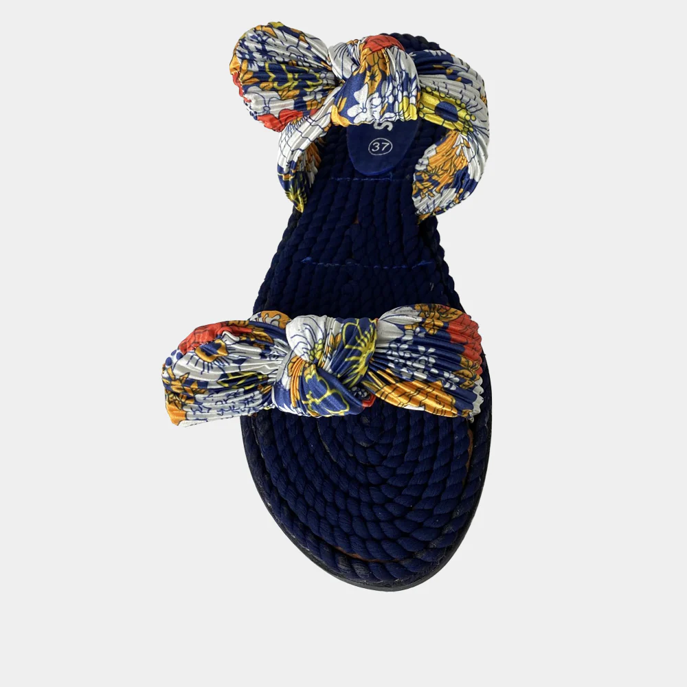 Confortables et casual, les plagettes plates Ann Tuil Cerise en corde et foulard marine sont idéales pour cet été. Découvrez toute la collection de chaussures Ann Tuil.