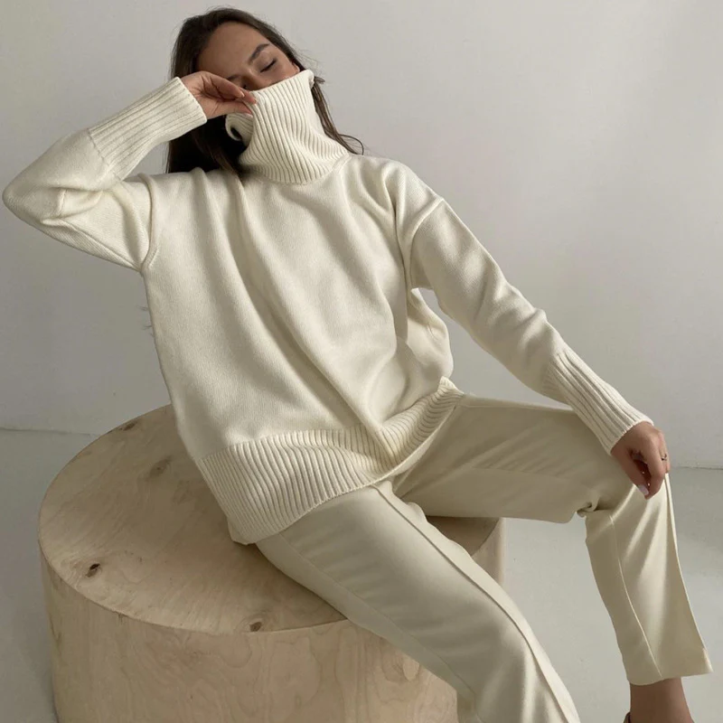 Col haut élégant : Ce pull protège contre le froid tout en apportant une touche de sophistication, idéal pour les journées fraîches.