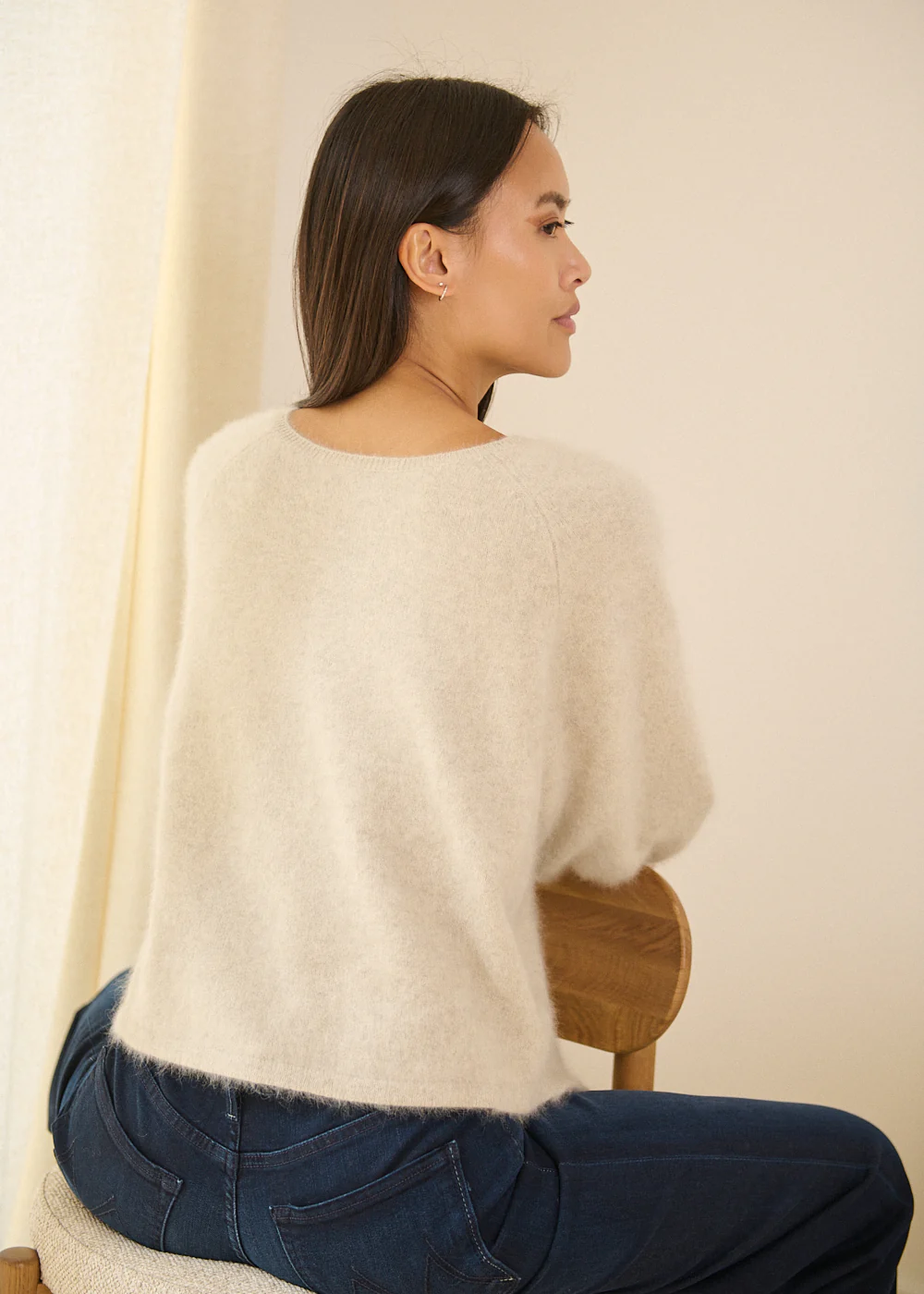 Le pull en cachemire Ann Tuil Vera 22BBSW25 allie douceur, élégance et confort. Avec sa coupe légèrement ample et ses manches longues resserrées aux poignets, il crée une silhouette fluide et féminine. Son col rond classique met en valeur le port de tête, tandis que le détail des boutons aux poignets apporte une touche raffinée et subtilement travaillée. Dans un gris chiné doux et chaleureux, il s’associe aussi bien à un jean qu’à un pantalon plus habillé. Une pièce essentielle du vestiaire, à la fois cosy et chic.