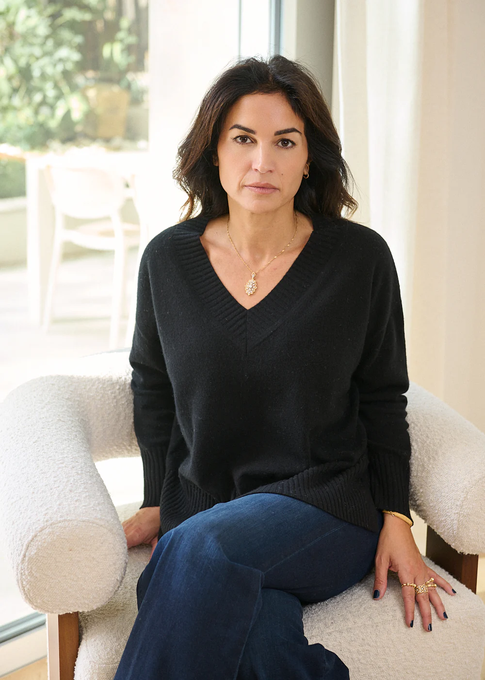 Confectionné en cachemire d’une douceur incomparable, le pull Ann Tuil modèle Vivian séduit par son col V fendu élégant et sa coupe décontractée. Les larges bordures côtelées apportent du caractère et structurent la silhouette avec modernité. Un essentiel raffiné à porter seul ou superposé.