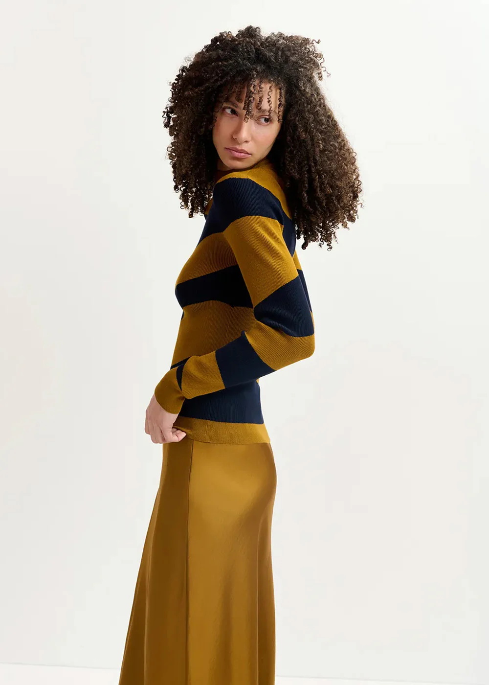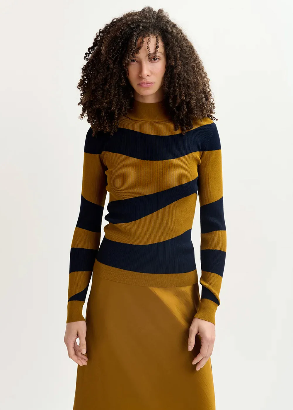Pull tricoté en fines côtes pour une coupe près du corps flatteuse destinée à être portée rentrée. Avec son motif ondulé unique, il est notre version moderne du style à rayures classique.