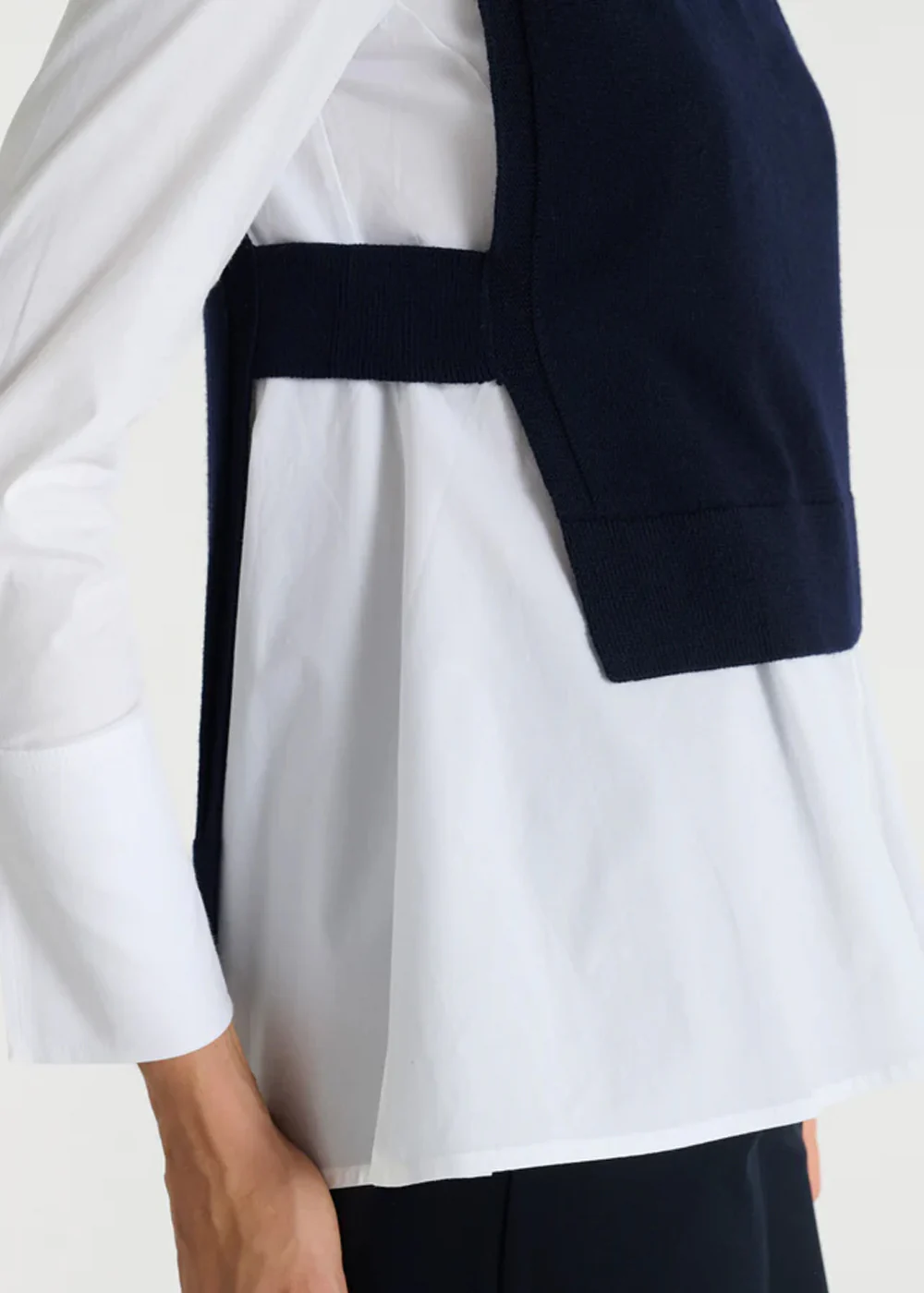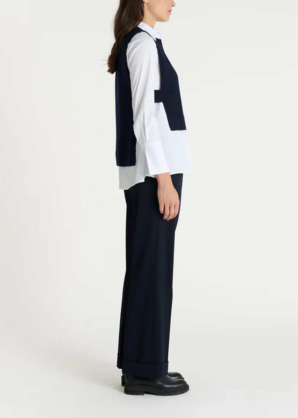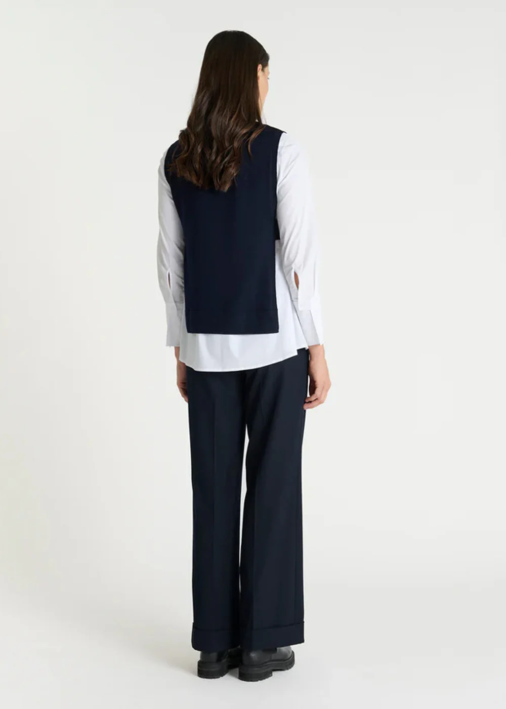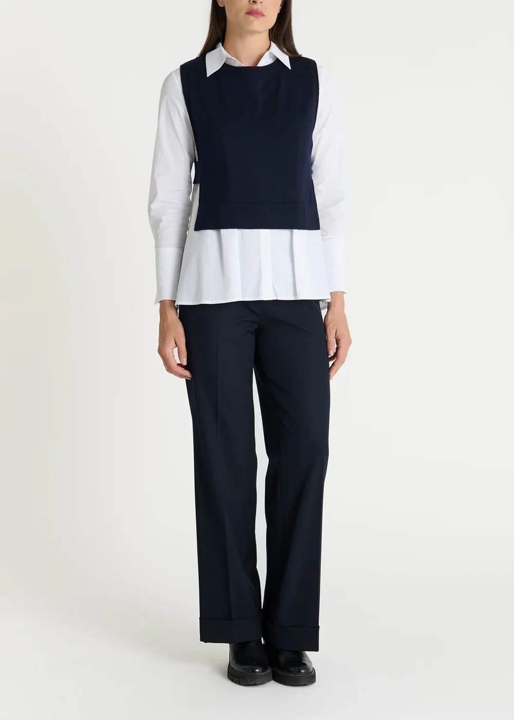 Ce pull Hana San débardeur en laine mérinos 1 fil à col rond est la pièce idéale pour jouer les superpositions. Sa base droite, légèrement plus longue à l’arrière, accompagne vos mouvements avec fluidité. Porté sur une chemise ou à même la peau, il réchauffe votre silhouette avec sobriété.