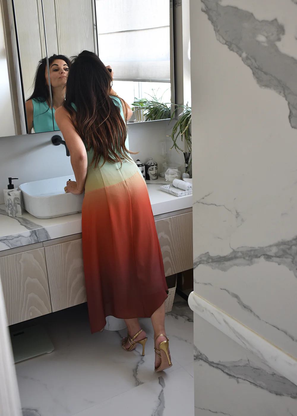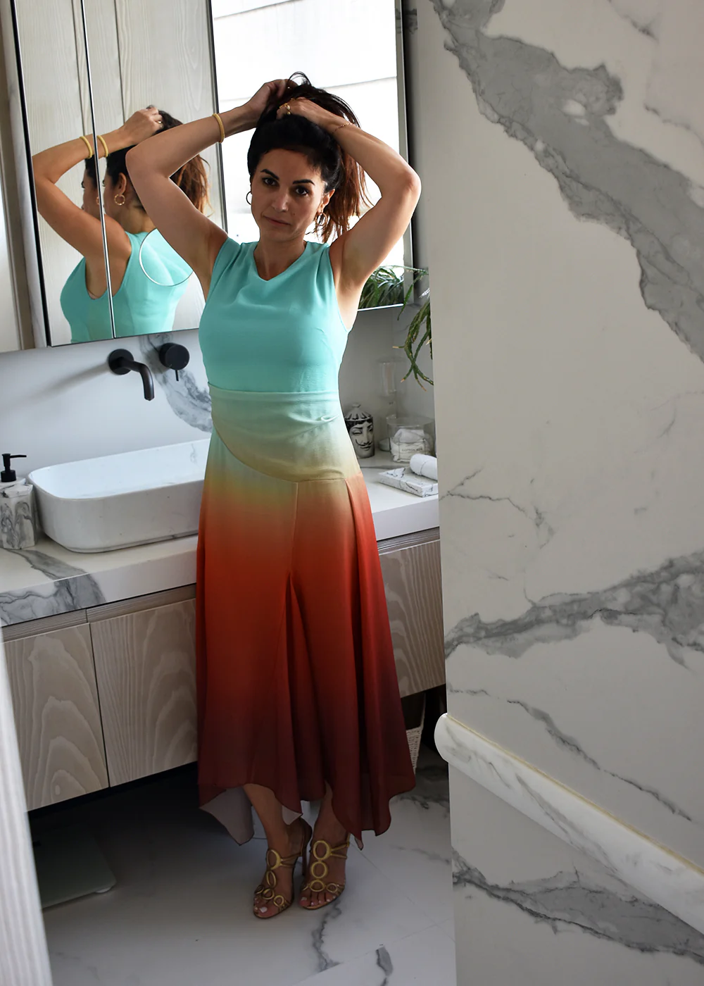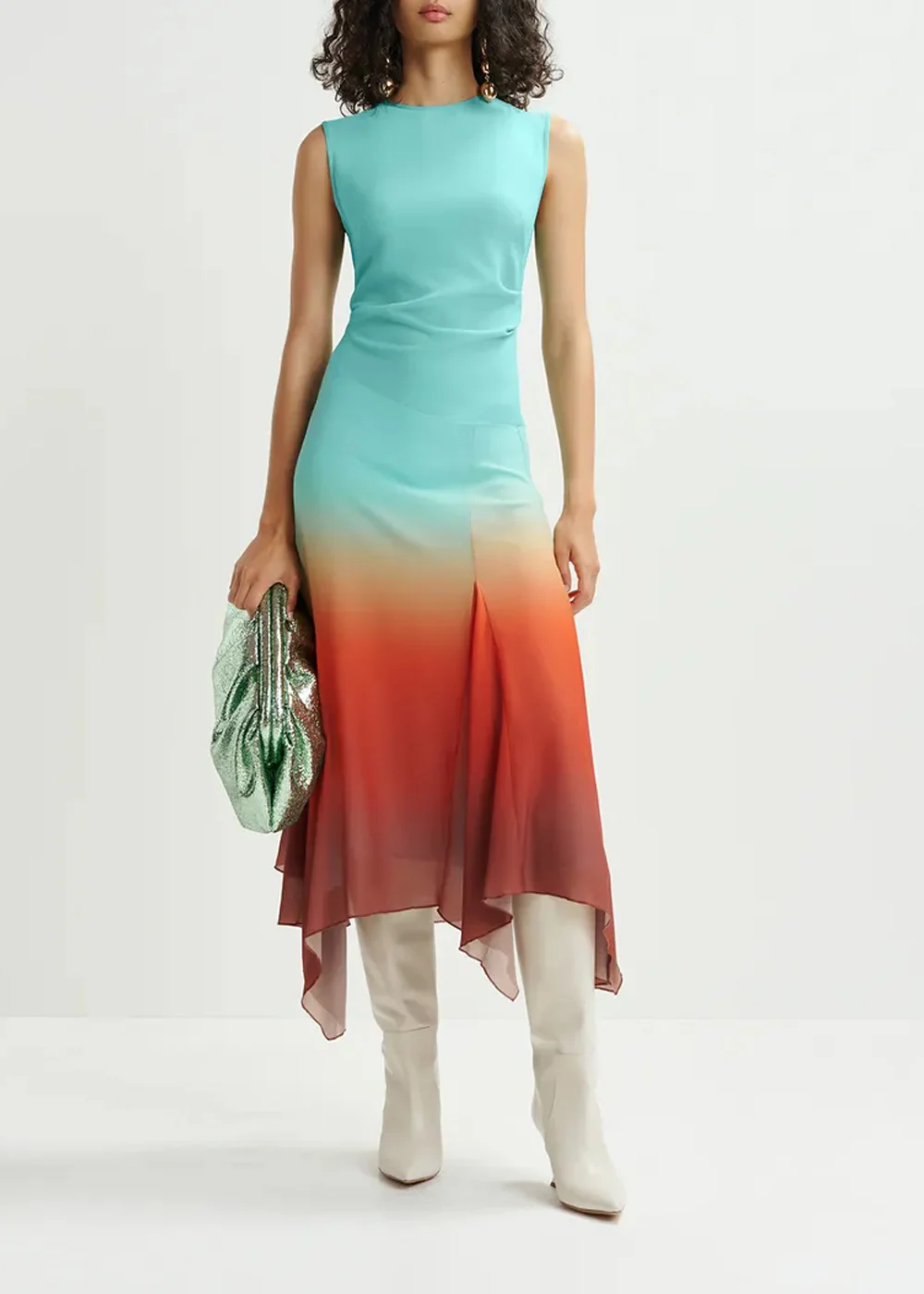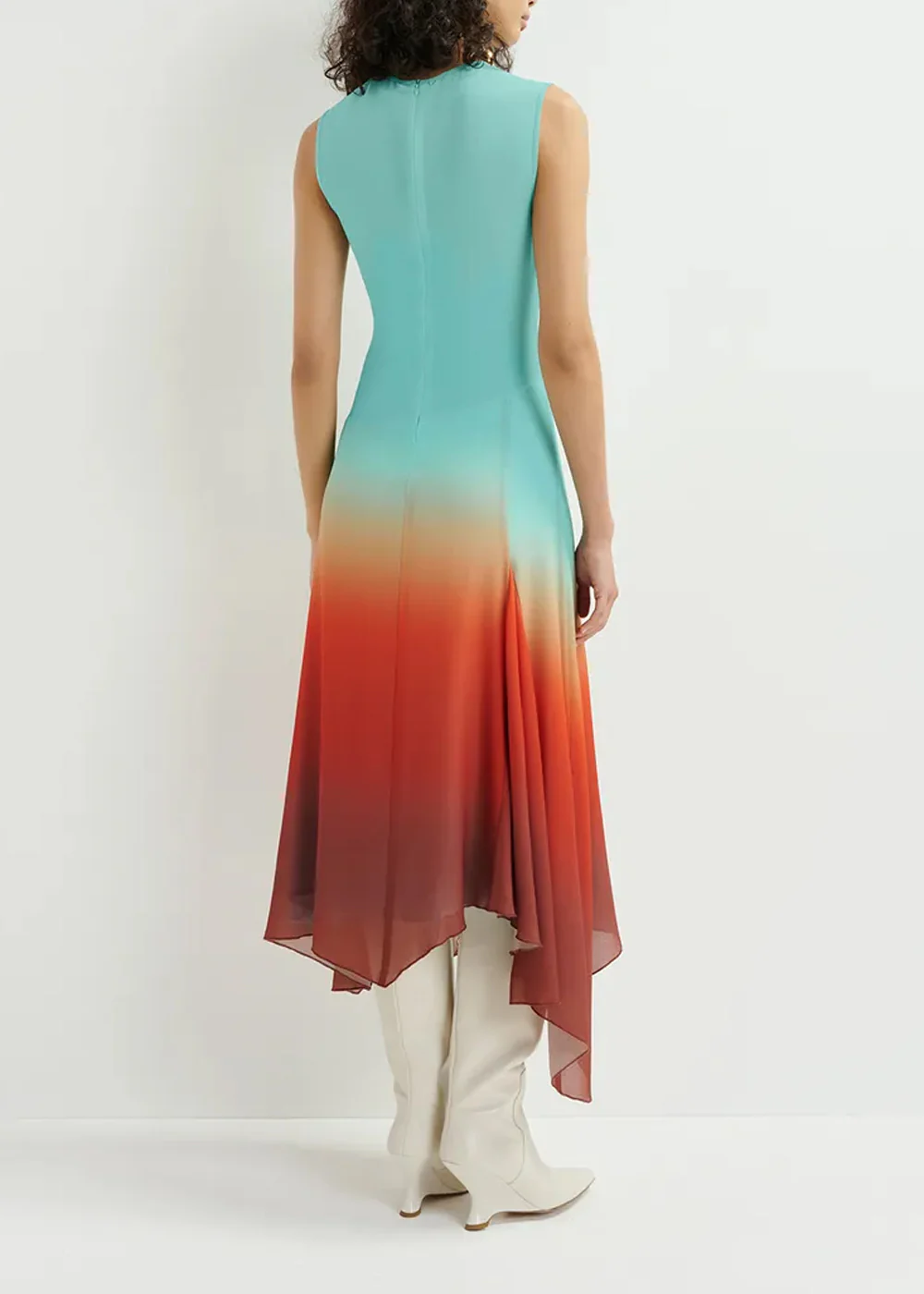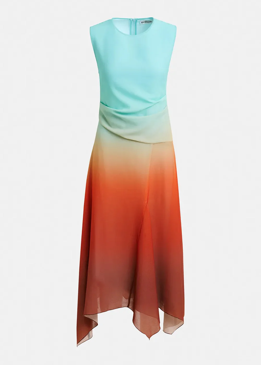 Ornée d’un imprimé tie-dye, cette robe mi-longue est conçue dans une coupe décontractée avec une silhouette trapèze qui allie confort et liberté de mouvement. L’ourlet asymétrique, rehaussé d’un pli au niveau de la couture latérale, lui donne une allure contemporaine, tandis que la fermeture à glissière dissimulée assure une finition nette. Entièrement doublée pour plus de confort, cette robe est parfaite pour un look décontracté mais toujours aussi stylé.