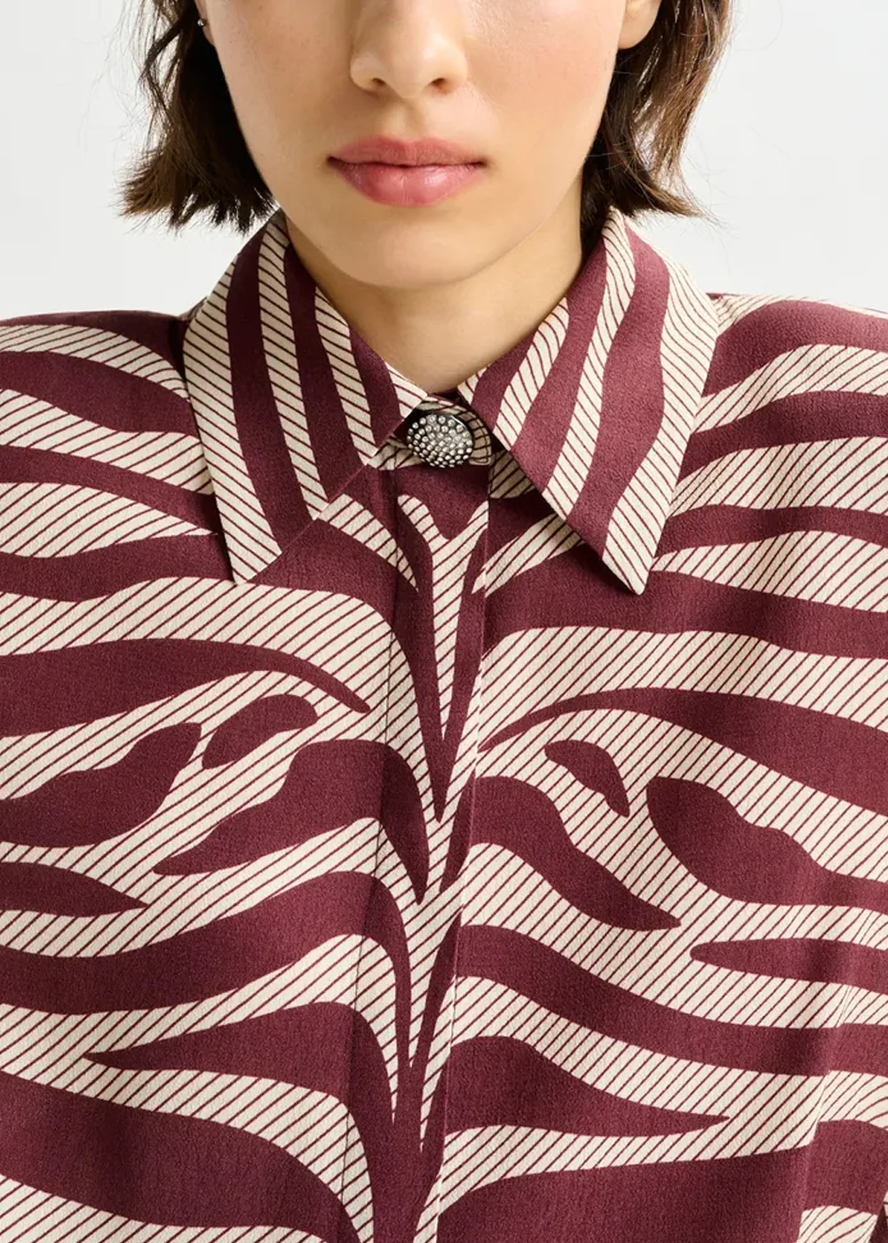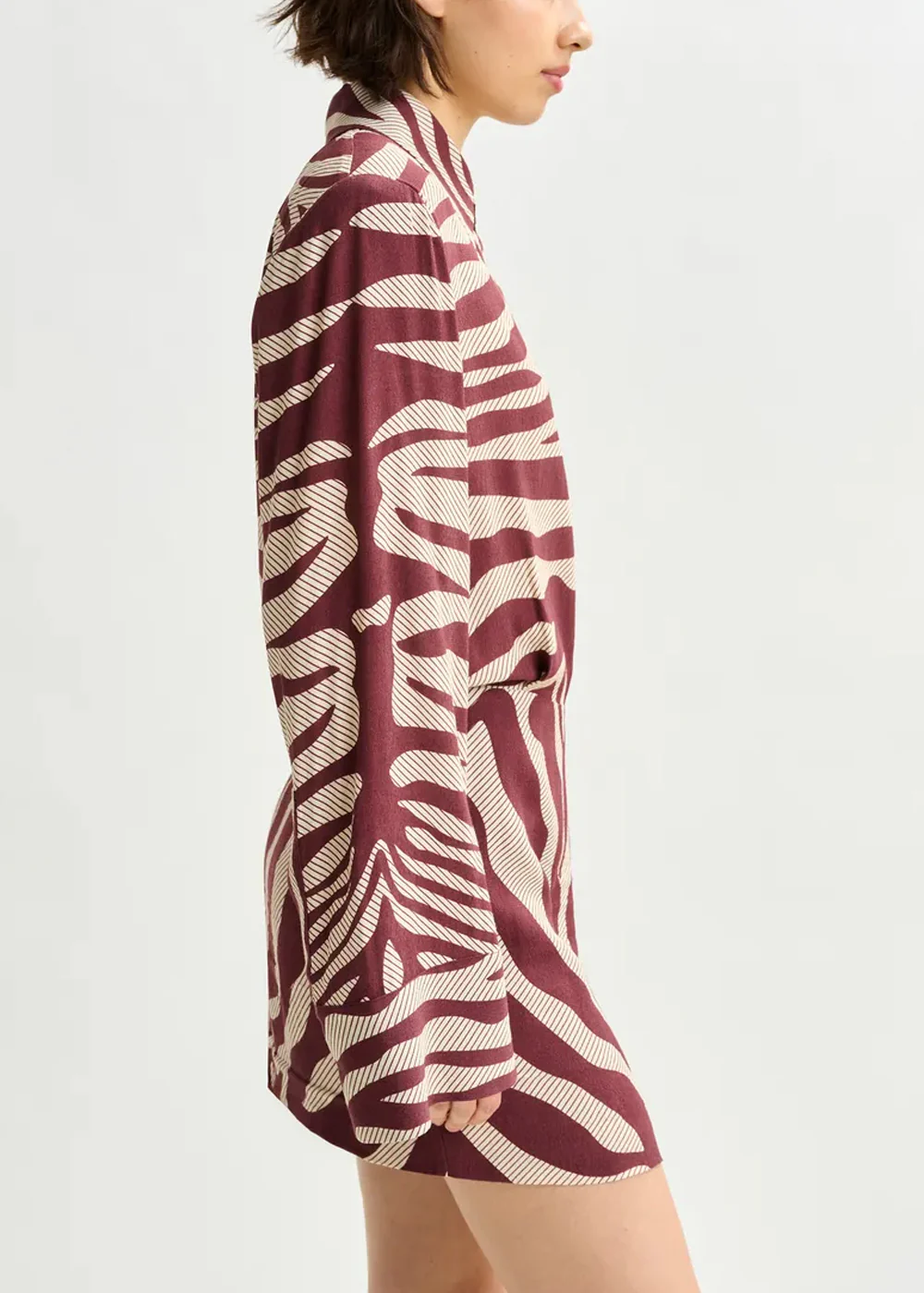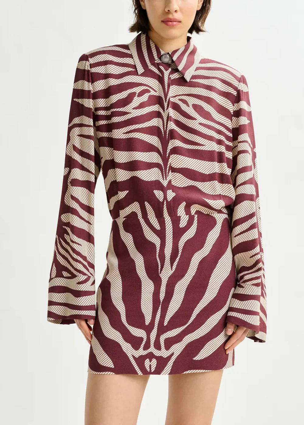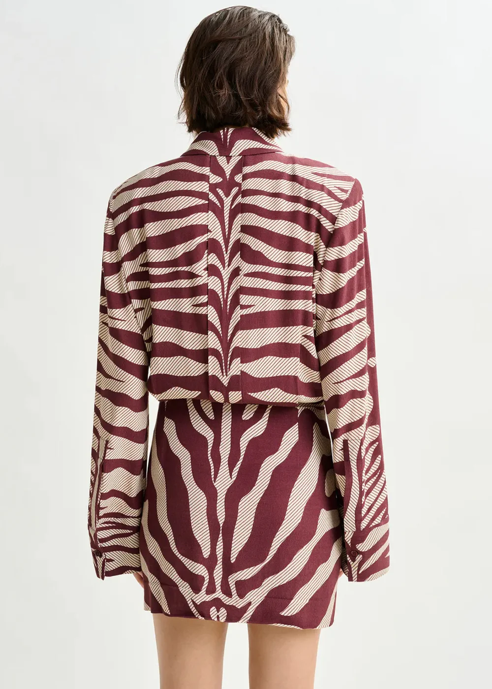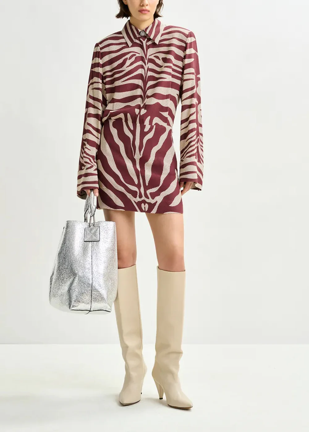 Mini-robe dotée d’épaulettes et des plis creux à la taille pour une silhouette structurée. Le motif jacquard audacieux inspiré du zèbre attire l’attention, tandis que la patte dissimulée offre une finition épurée avec un détail de bouton. Partiellement doublée pour votre confort, elle est pourvue d’une fermeture à glissière dissimulée. Associez-la à des bottes ou des escarpins pour un look de soirée affirmé.