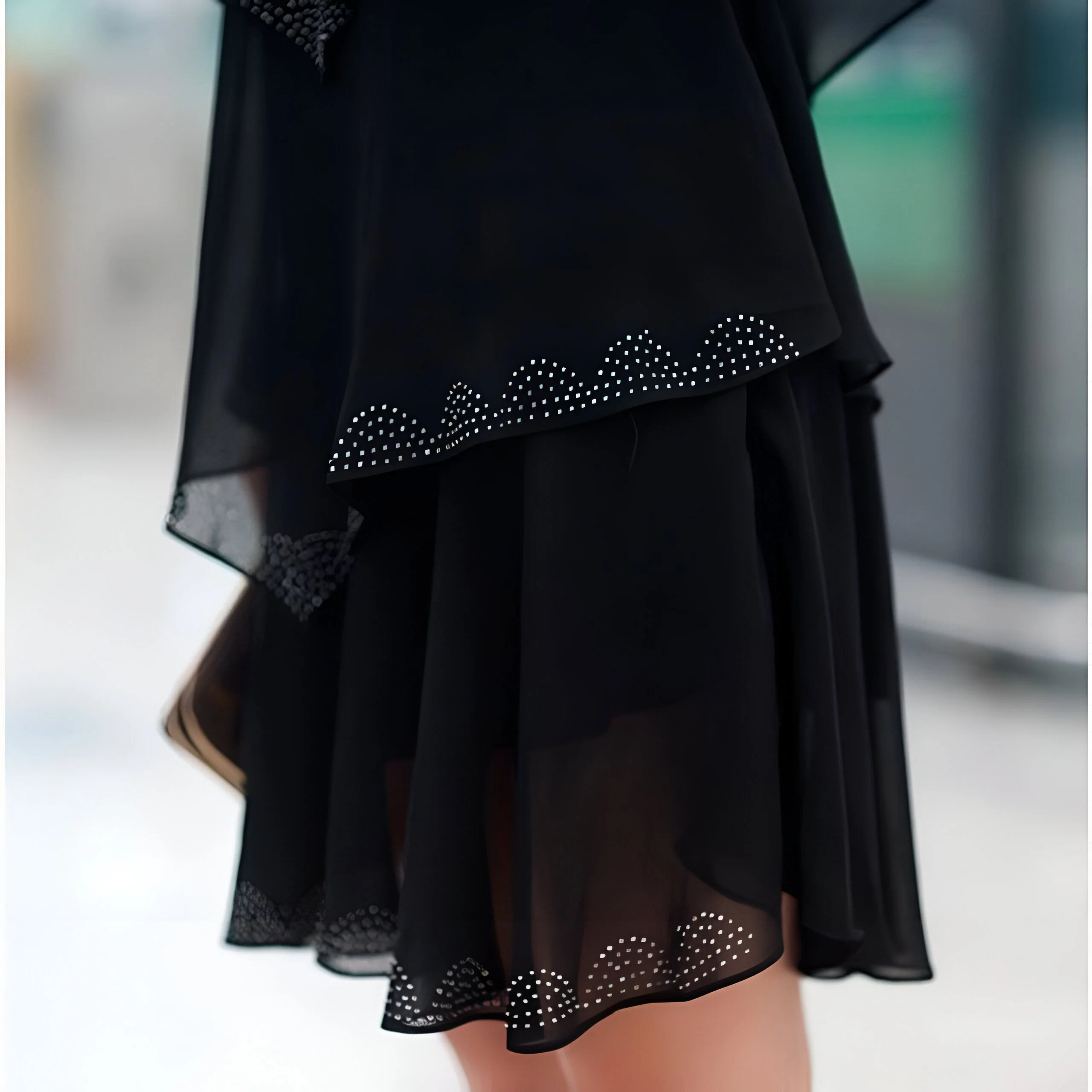Les volants, pièce maîtresse de cette robe, sont soigneusement confectionnés pour une finition impeccable. Ils apportent une touche de romantisme et de sophistication à la silhouette, créant un jeu de volume et de légèreté. Chaque détail est pensé pour sublimer la robe, des finitions soignées aux coutures discrètes. Le design est à la fois classique et moderne, assurant à cette robe une place de choix dans votre garde-robe pour les années à venir. C’est un vêtement qui raconte une histoire, celle d’un souci du détail et d’une attention particulière portée à la qualité.