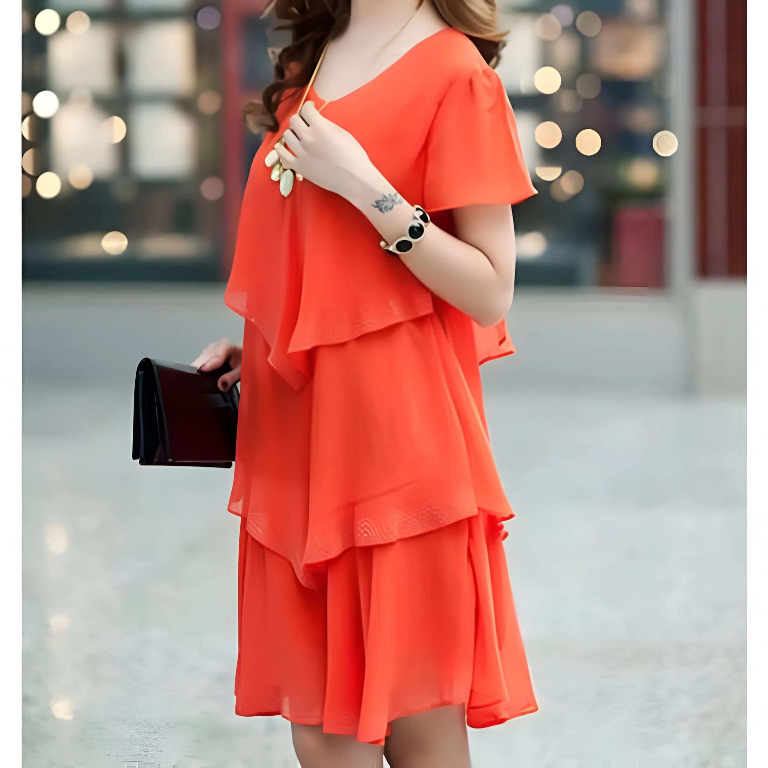 Nous avons choisi un tissu de haute qualité pour cette robe afin de garantir un confort optimal. Sa texture soyeuse et agréable contre la peau vous permettra de vous sentir à l’aise et confiante tout au long de la journée. La fluidité du tissu souligne la beauté des volants, leur donnant un mouvement gracieux à chaque pas. Le tombé impeccable de la robe épouse vos formes avec délicatesse, créant une silhouette féminine et flatteuse. Le choix du tissu n’est pas seulement question d’esthétique, mais aussi de durabilité : vous pourrez profiter de cette robe longtemps, saison après saison.