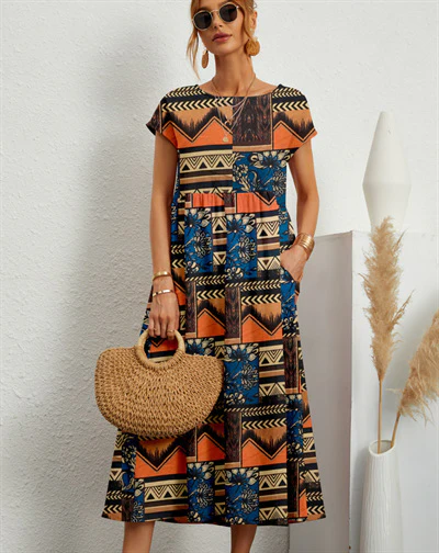 Affirmez votre style avec cette robe midi fleurie, conçue pour offrir un look à la fois chic, féminin et décontracté.