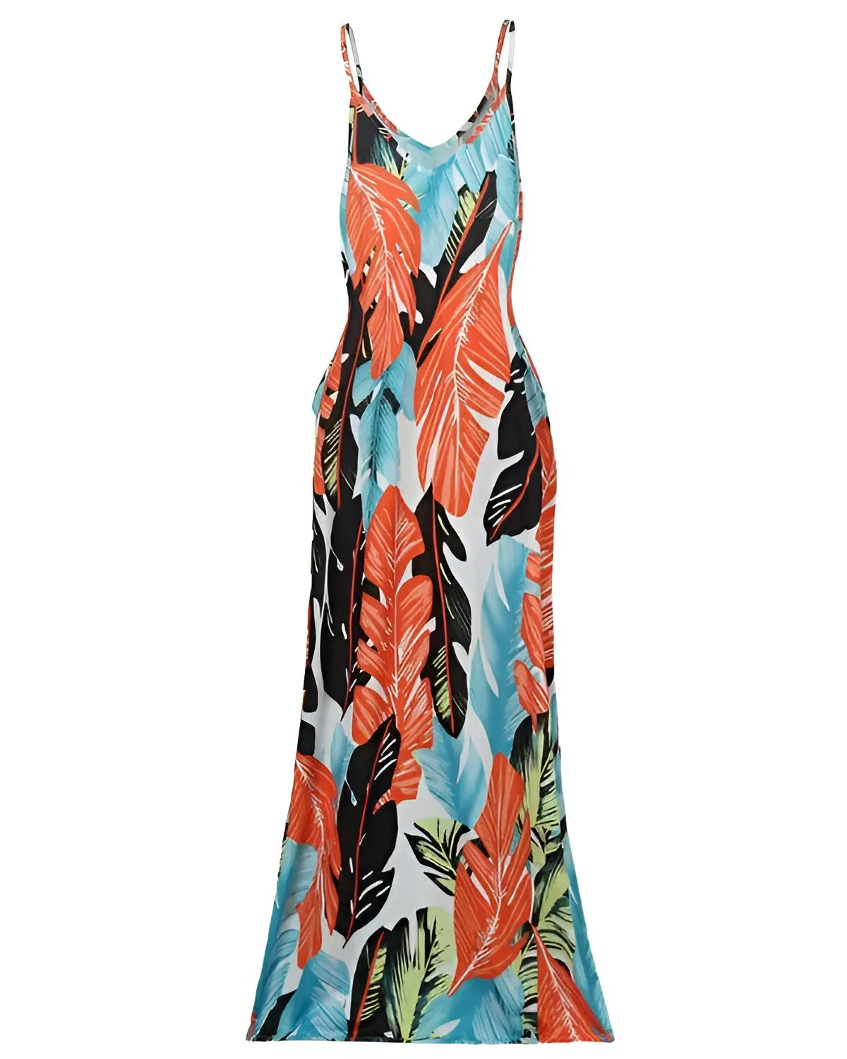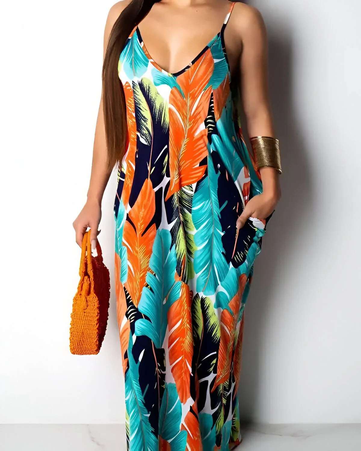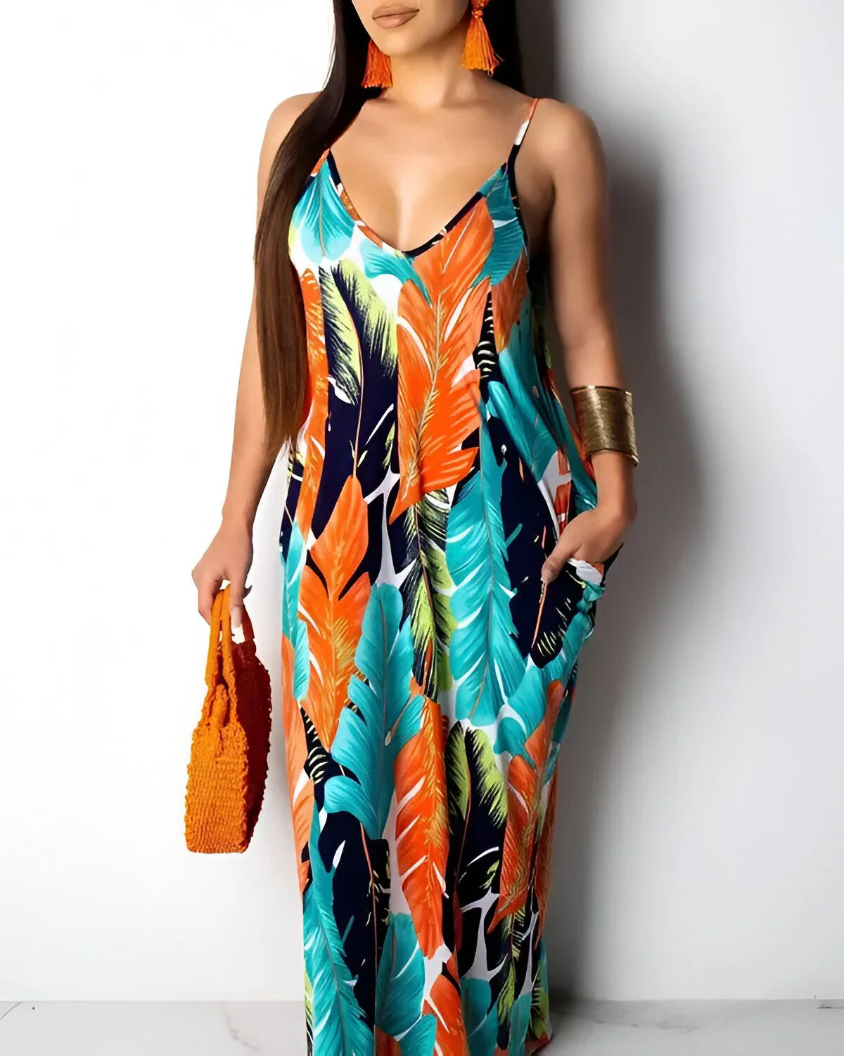 Succombez au charme irrésistible de cette robe longue à l’imprimé feuilles et à la poche pratique. Confectionnée en polyester, elle vous séduira par son confort et sa qualité exceptionnelle. Son col en V flatteur et ses bretelles spaghetti délicates subliment la silhouette féminine avec sophistication. Laissez-vous transporter par son motif tropical qui évoque des escapades ensoleillées. Cette robe est l’alliance parfaite du chic et du charme, idéale pour les chaudes journées d’été.